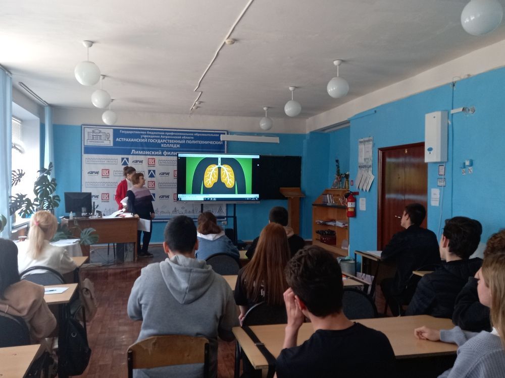 Час здоровья «Молодежь выбирает ЗОЖ!» прошел на базе Лиманского филиала АГПК с участием специалистов Центральной модельной библиотеки п. Лиман. В рамках первого этапа федеральной межведомственной комплексной оперативно-профилактической операции «Дети России-2023», регионального проекта по профилактике наркомании и других асоциальных проявлений среди несовершеннолетних и молодежи «Астраханская область – территория безопасности!» библиотекари напомнили студентам о главных составляющих здорового организма человека, проинформировали о последствиях потребления наркотиков, продемонстрировали видеоролики о вреде курения, алкоголя и наркотиков, ответили на возникшие вопросы.