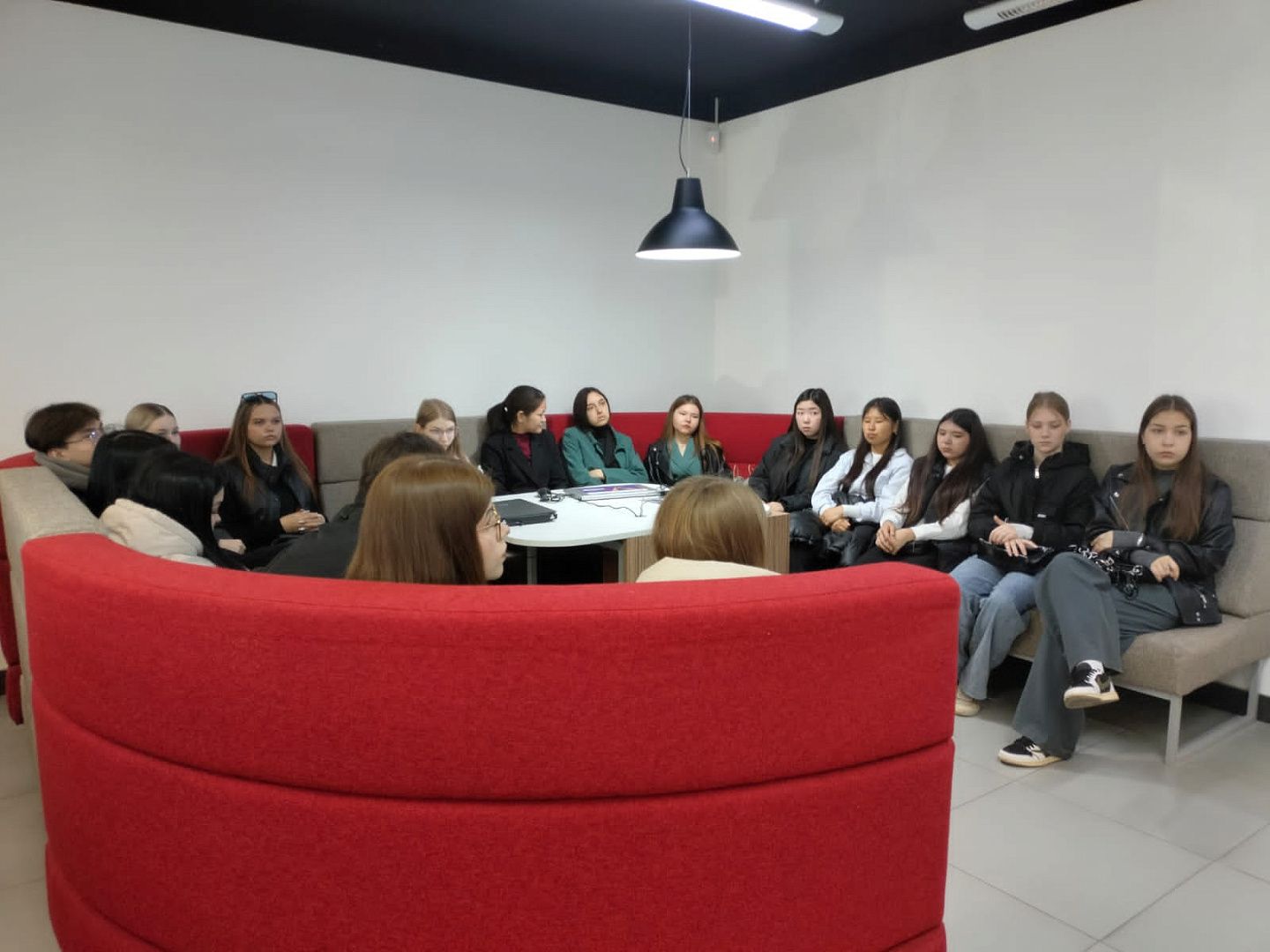 Встреча с сотрудниками отделения началась с исторической справки – истории развития банка Почта Банк. Также шла речь о возможности карьерного роста, привилегиях и бонусах сотрудников Банка. Кроме этого студентам рассказали не только об условиях возможности трудоустройства на вакантные должности, но и о том, кто такие дропперы и их категории, а также об основных видах преступлений, связанных с ними.