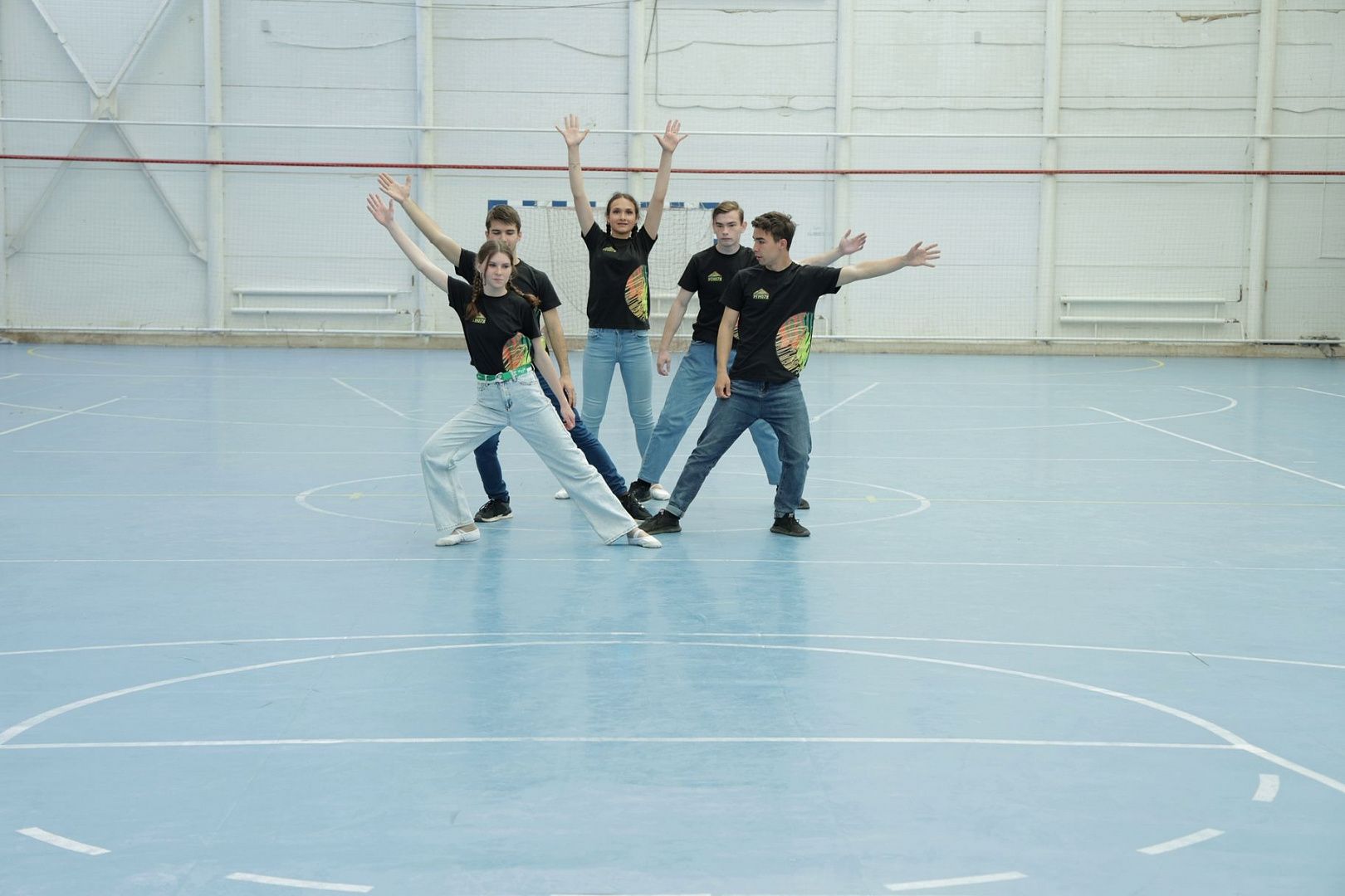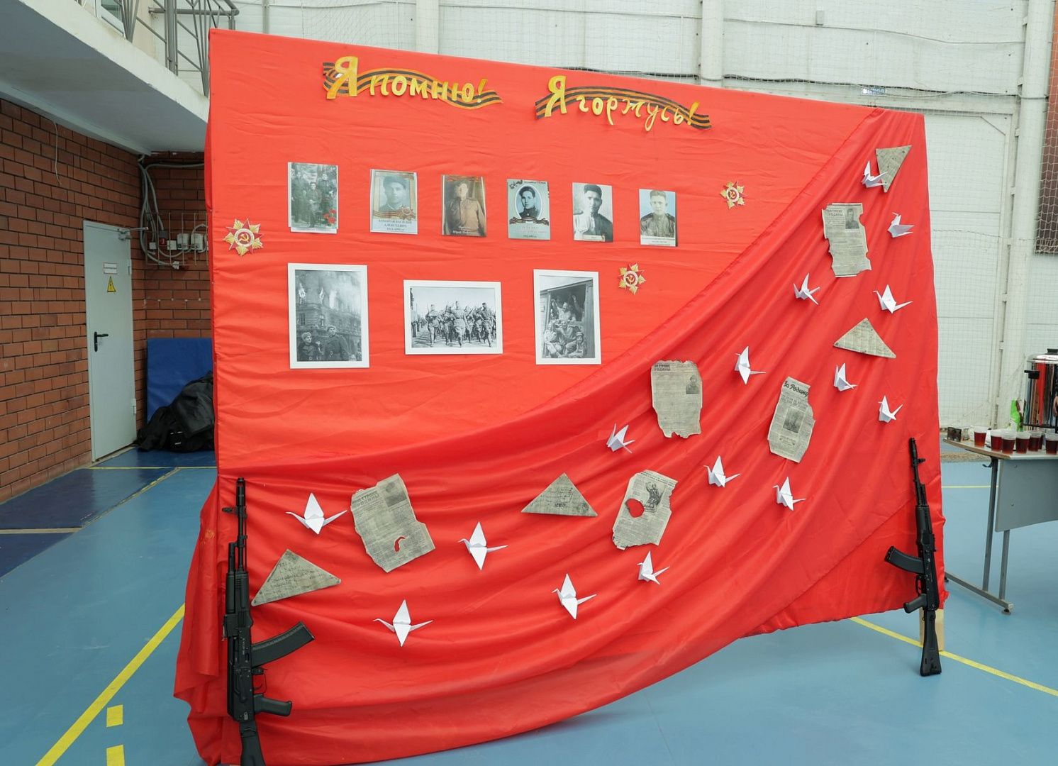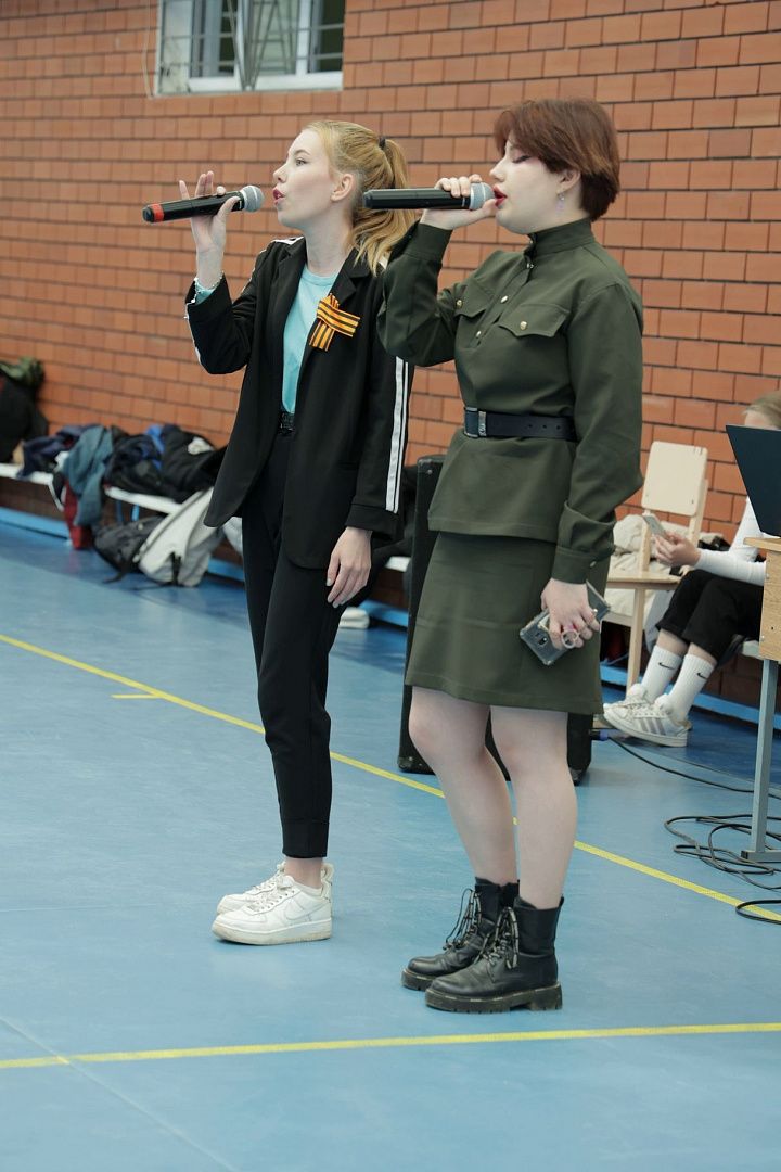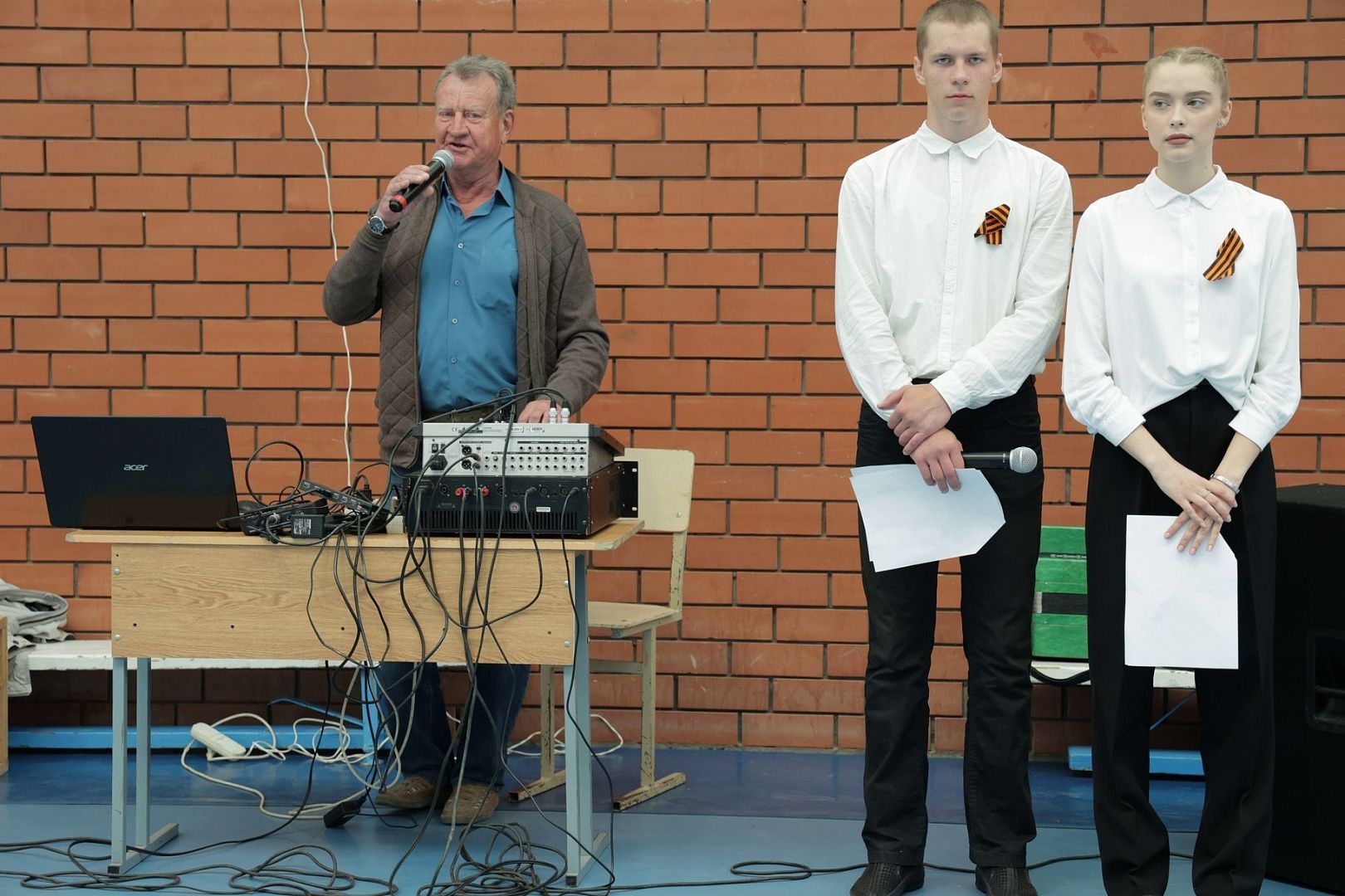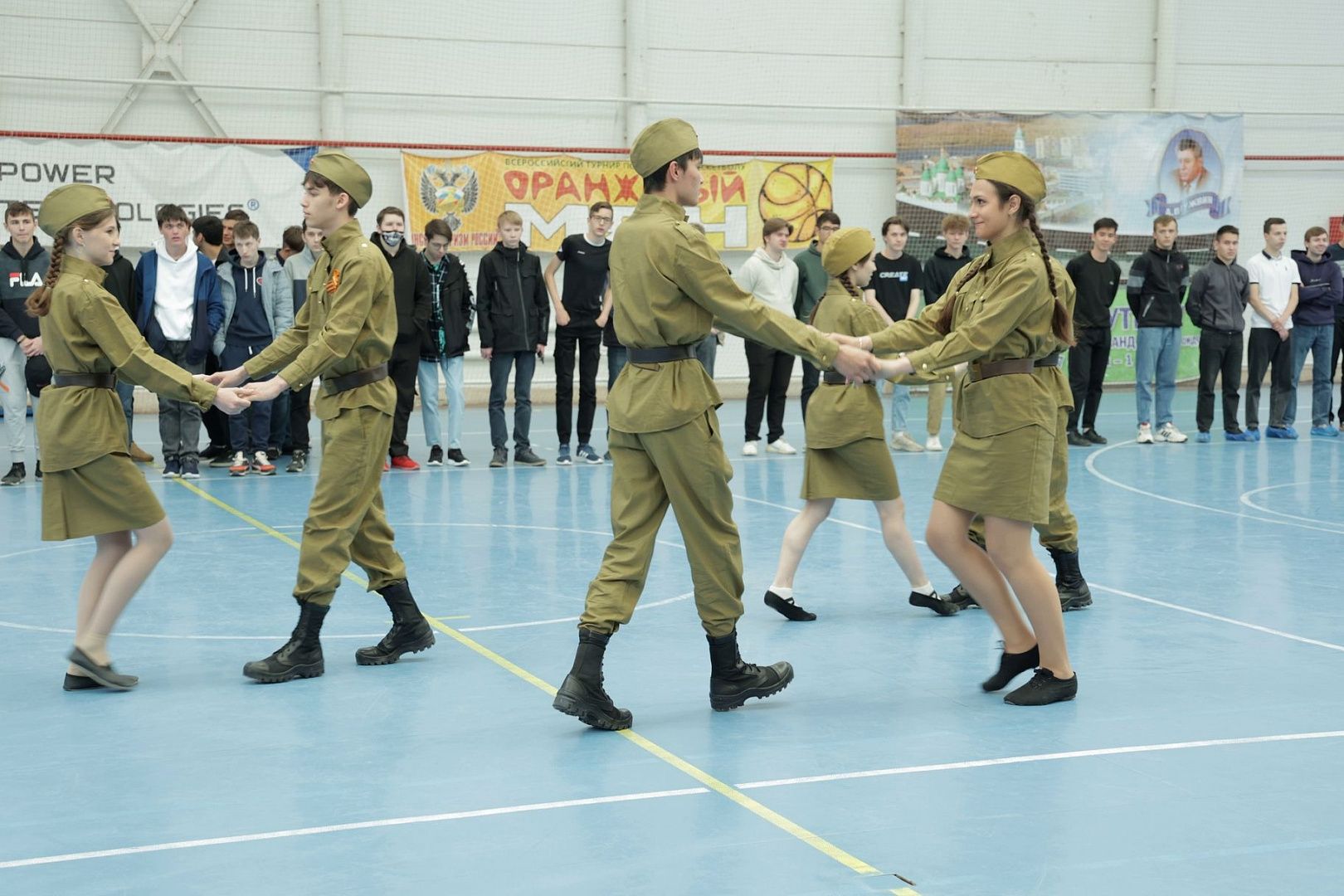 Перед началом программы ребята выстроились в число 77 в честь годовщины Победы. В исполнении Валерии Голубятниковой прозвучала песня «Погибшие в небе за Родину», после которой студенты и преподаватели почтили память погибших минутой молчания.