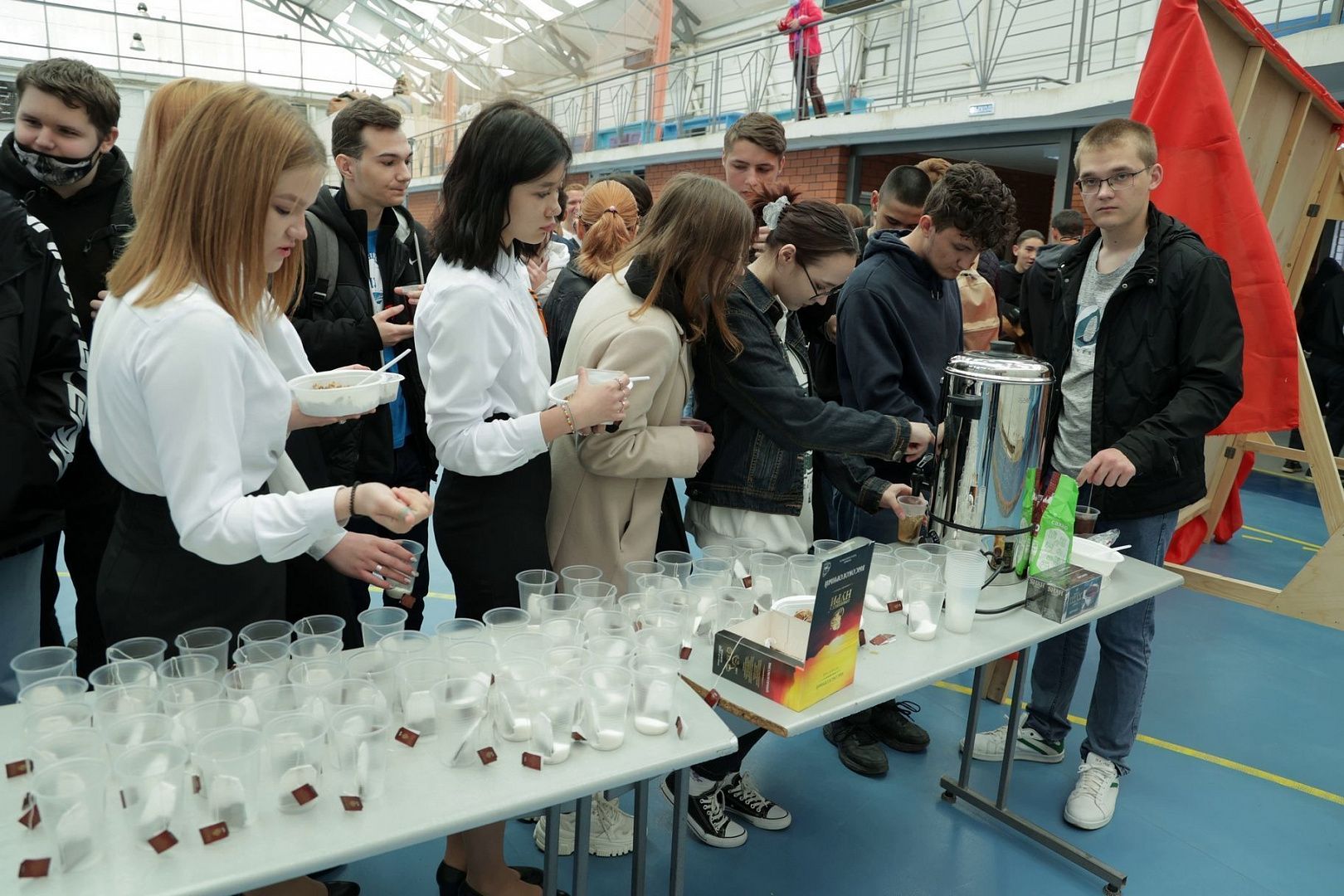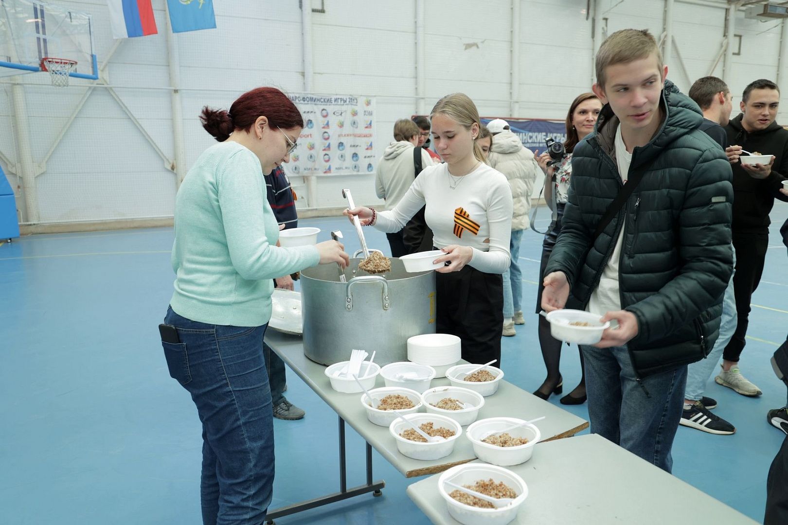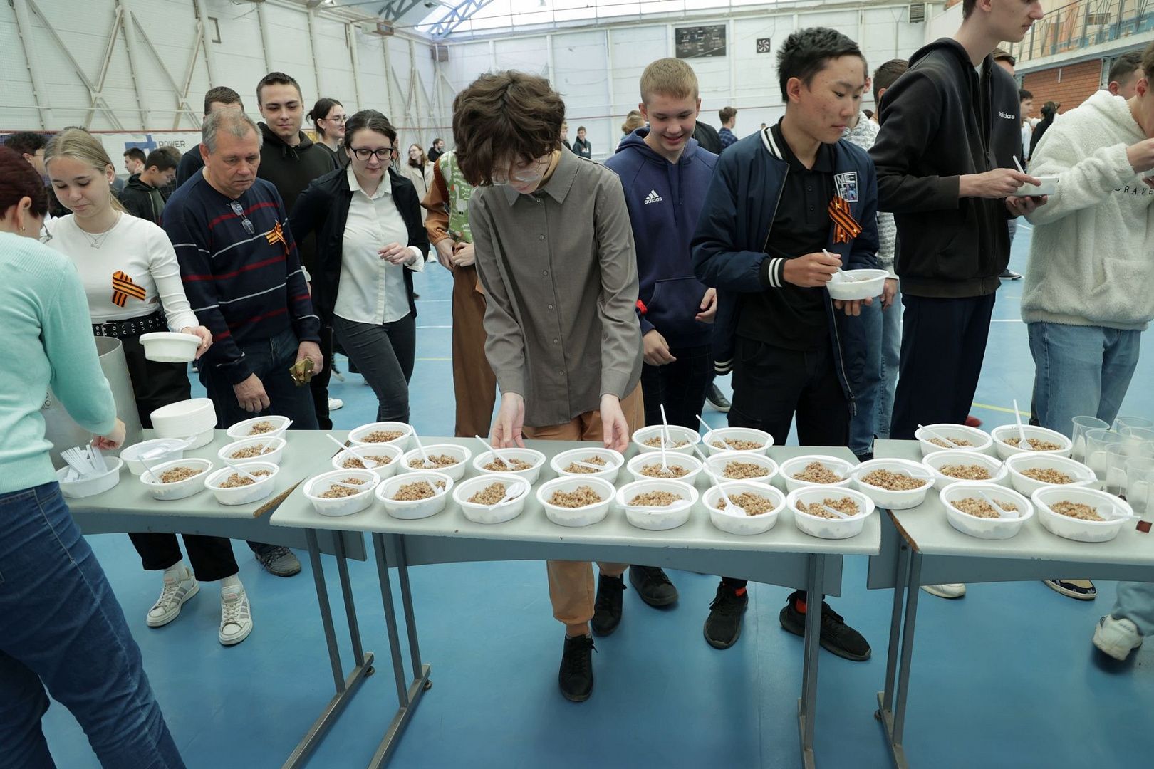 После торжественной части гостей мероприятия ждала «фронтовая кухня». Все желающие отведали солдатскую гречневую кашу и чай.
