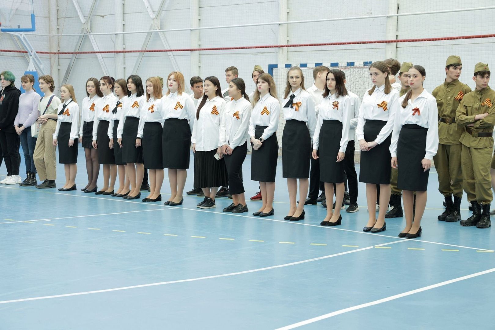 Сегодня студенты Астраханского государственного политехнического колледжа приняли участие в торжественной линейке, посвящённой 77-й годовщине Победы советских войск в Великой Отечественной войне. Из-за неблагоприятных погодных условий мероприятие прошло в физкультурно-оздоровительном комплексе.