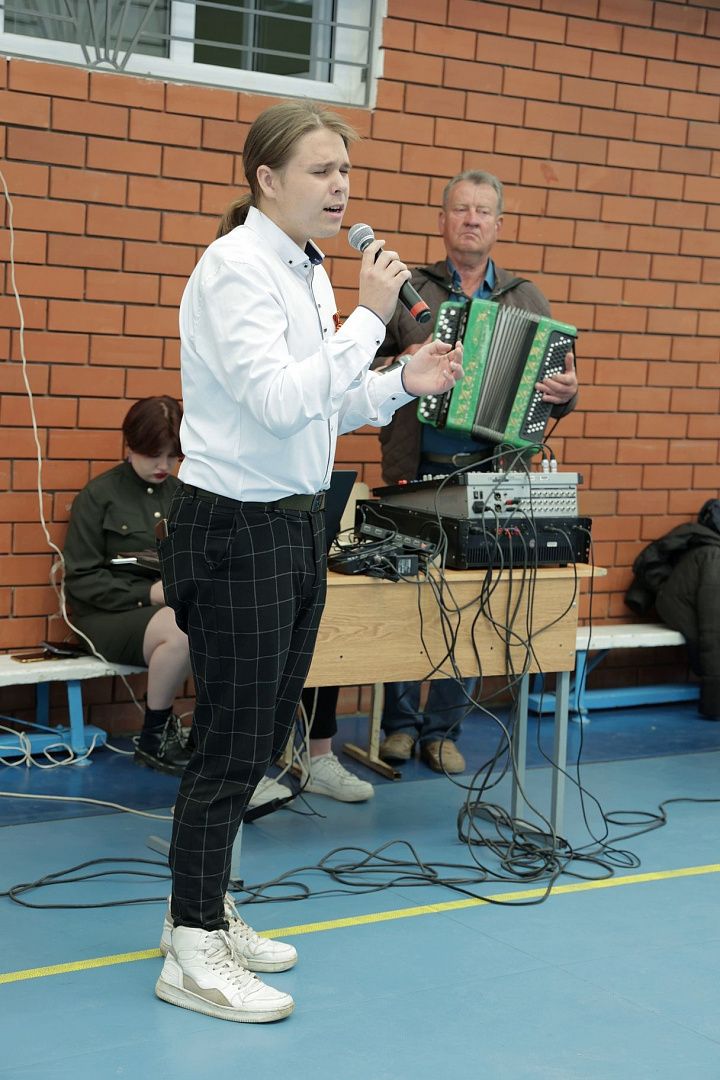В заключительной части праздничного мероприятия музыкальный руководитель Александр Николаевич Козлов вместе с присутствующими исполнил песню «День Победы».