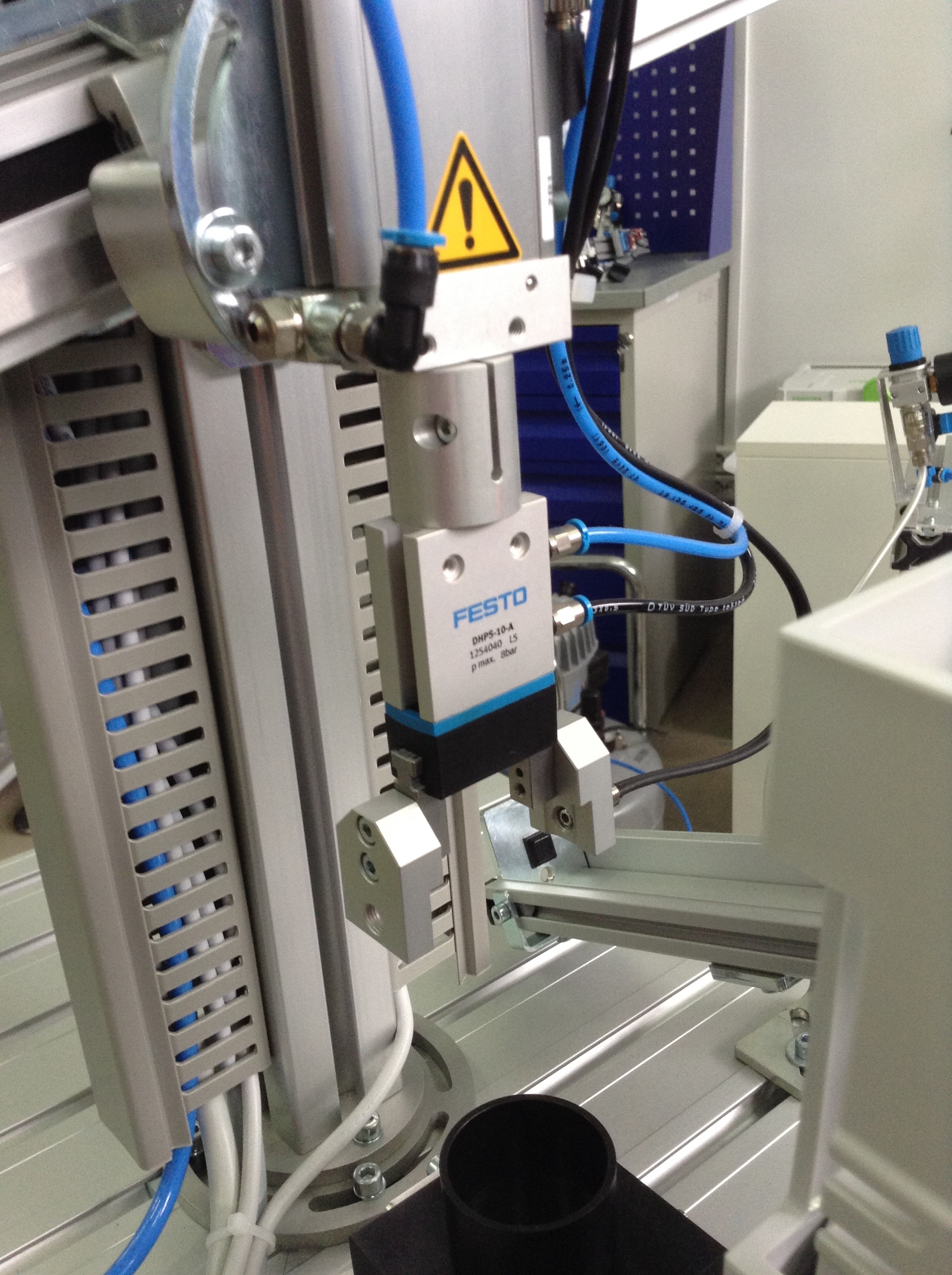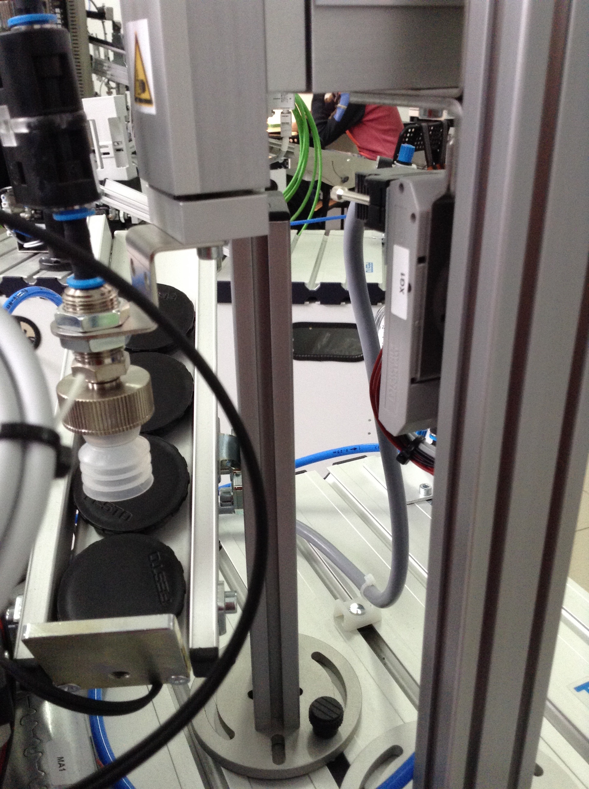 В системе установлены пневматические компоненты (цилиндры, механизмы захвата) и электрические компоненты (датчики, электродвигатели электромагнитные клапаны) На пневматические компоненты подается сжатый воздух с помощью компрессора. На служебном блоке компрессора установлено давление 6 бар