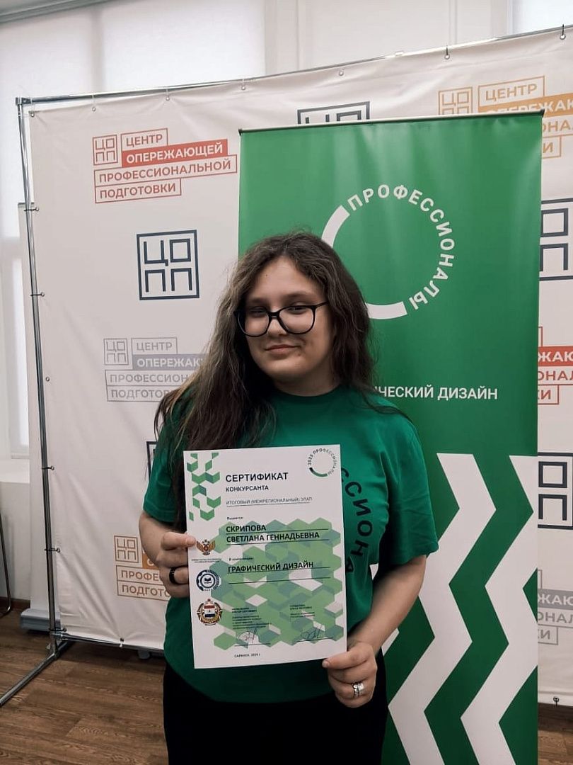 Астраханскую область на полуфинале представляла студентка Астраханского государственного политехнического колледжа отделения информационных технологий, экономики и права группы ГРД-4109 Светлана Скрипова, занявшая 1 место по компетенции «Графический дизайн» на Региональном этапе Чемпионата по профессиональному мастерству «Профессионалы» в Астраханской области – 2025.