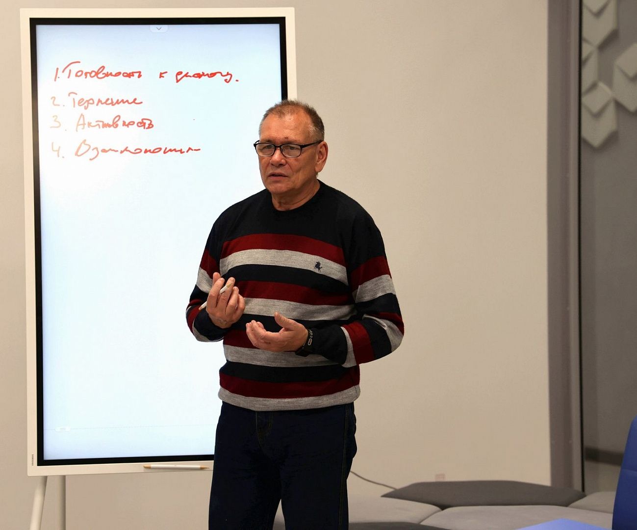Заключительное занятие «Я – педагог» было направлено на поиск себя в профессии. Педагоги поговорили о понимании своего места в обществе, о возможных ролях преподавателя, умении быть разным, а также о необходимости постоянного саморазвития.