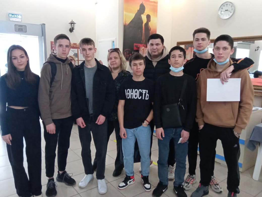 Студенты групп СЭН-301, ПНГ-225, РЭМ-1209, РЭМ-1309, СУ-1109, СУ-303, СП-1209, СП-211 посетили кинотеатр «Иллюзион». Ребят сопровождали их кураторы: Татьяна Викторовна Смирнова, Татьяна Витальевна Кастерина, Дарья Александровна Каргина, Наталья Викторовна Вяткина, Екатерина Ивановна Кусмарцева.