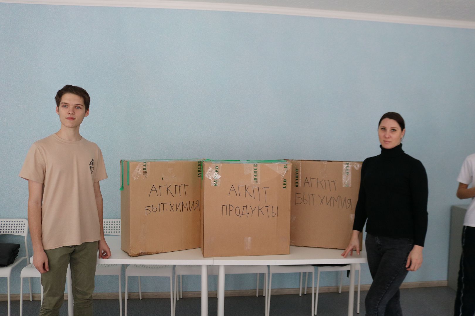 Гуманитарную помощь в Центр сегодня привезли студенты и преподаватели Камызякского сельскохозяйственного колледжа, Астраханского государственного колледжа профессиональных технологий, Астраханского базового медицинского колледжа и Волго-Каспийского морского рыбопромышленного колледжа. Также гуманитарная помощь поступила от студентов, преподавателей, сотрудников АГПК и жителей близлежащих домов.