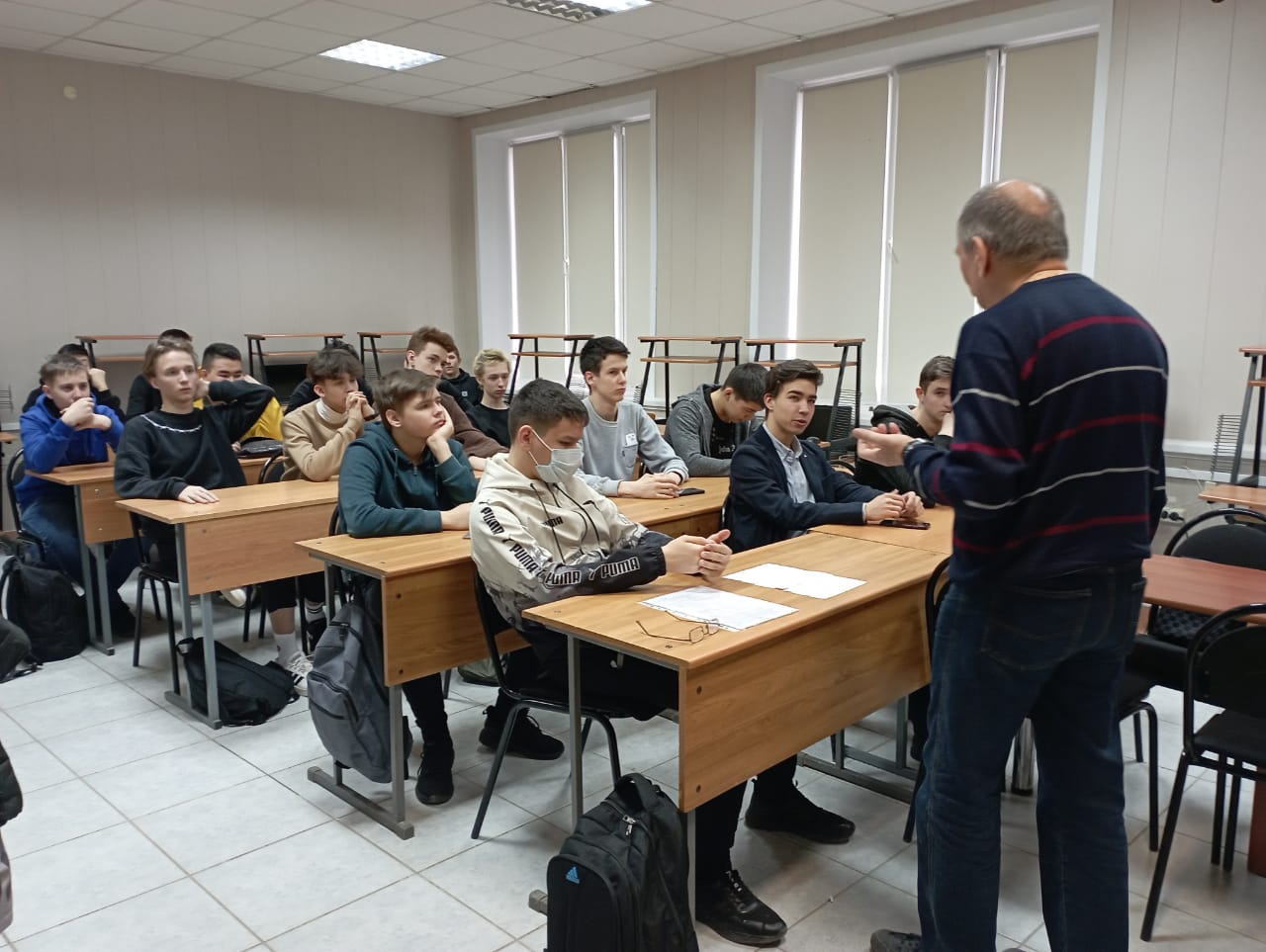Подобная встреча со студентами прошла 9 марта в группе ПНГ-225. Кураторский час провели педагог-психолог Александр Швецов и куратор группы Татьяна Кастерина.