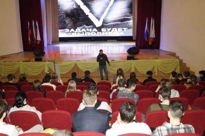 В целях патриотического воспитания молодого поколения для студентов Лиманского филиала АГПК был организован Урок мужества, посвященный защитникам Родины. Встреча проходила с участием главы Лиманского района М.А. Гребенщикова и педагога детско-юношеской спортивной школы А. Джембеева. Они поделились своими личными историями участия в контртеррористических операциях. Побеседовали о героях времен Великой Отечественной войны и о земляках, выполняющих свой долг по защите Родины.