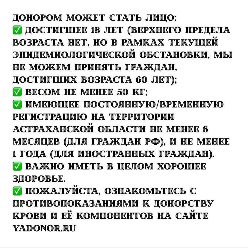 Ознакомиться со списком противопоказаний можно на сайте Службы крови www.yadonor.ru