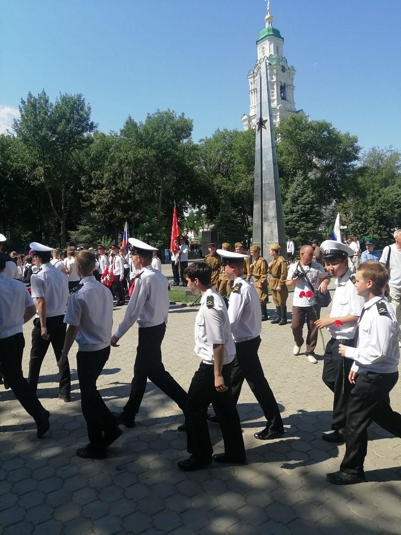 Участниками линейки стали и студенты Астраханского государственного политехнического колледжа – члены патриотического клуба «Наследники Победы». Ребята прослушали выступление Левитана о начале войны, исполнили Гимн Российской Федерации, а также почтили память всех, кто пал на полях сражений, минутой молчания.