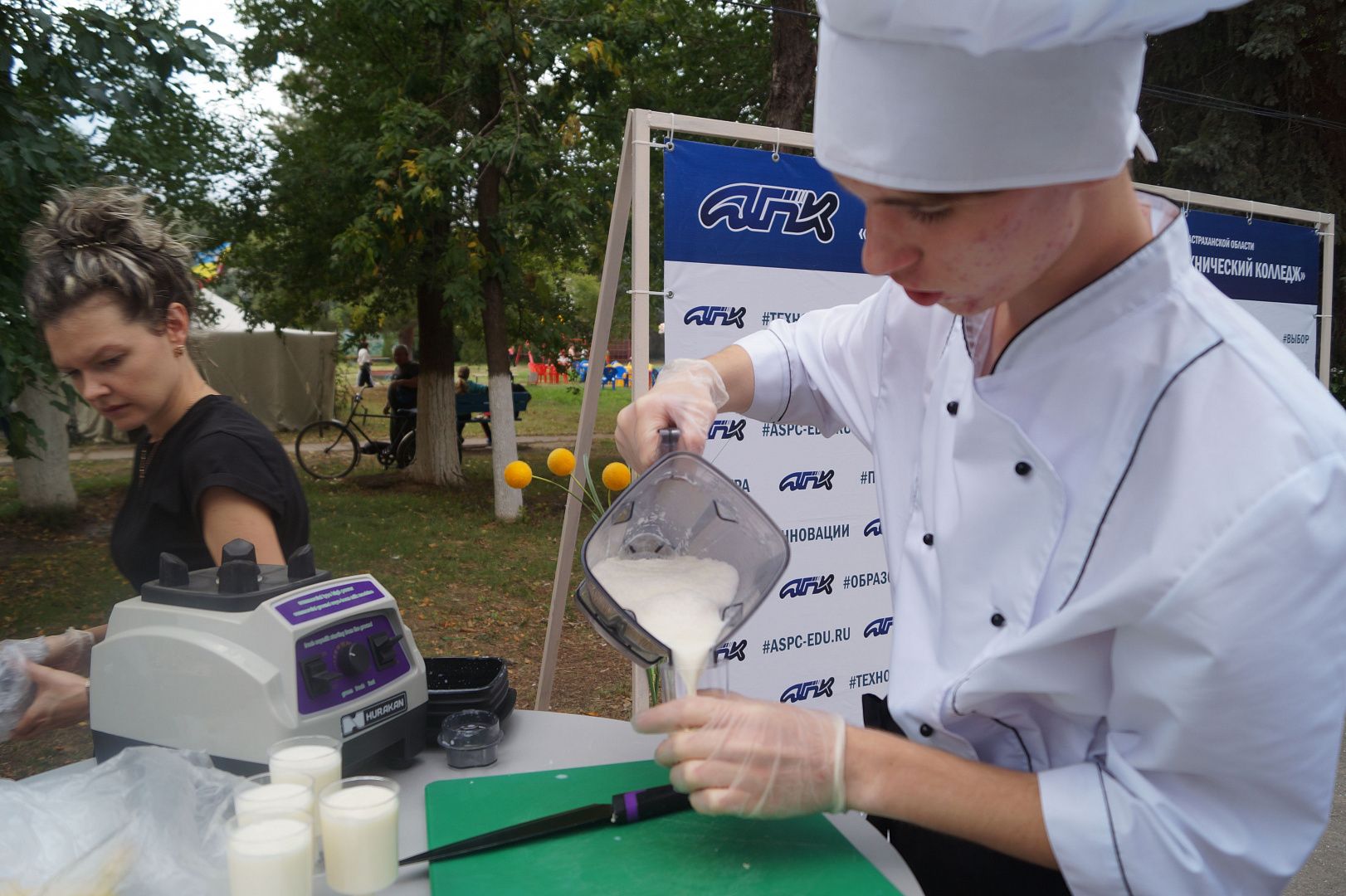 На площадке гостей встречали будущие повара, кондитеры, электромонтеры, юристы, логисты, бухгалтеры, специалисты по гостеприимству, нефтяники. Студенты продемонстрировали специальное снаряжение, работу учебных пособий по измерению силы тока и напряжения, угостили всех желающих блюдами национальной кухни и молочными коктейлями собственного приготовления.