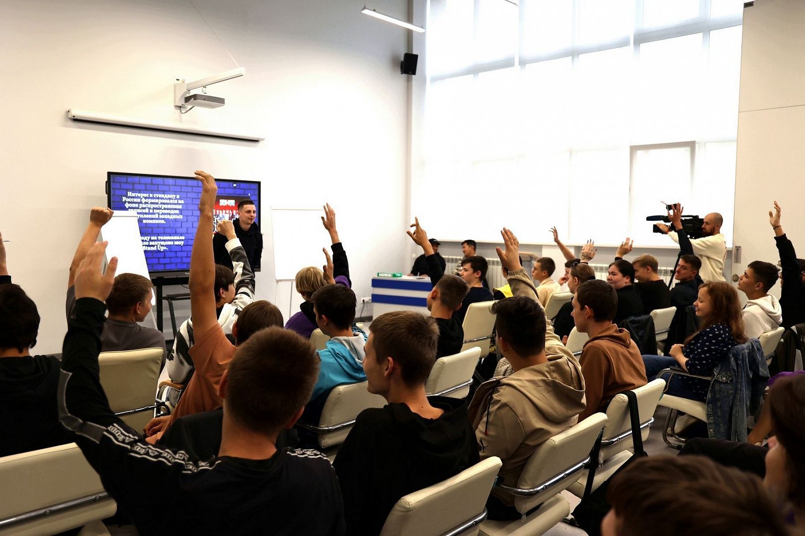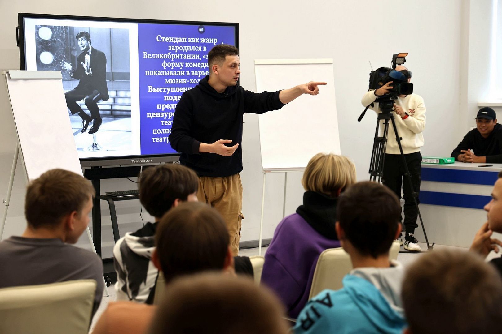Астраханские комики рассказали студентам о том, где и как зародился жанр Стендапа, поделились опытом и своей историей знакомства с жанром, а также провели мастер-класс по созданию шуток.