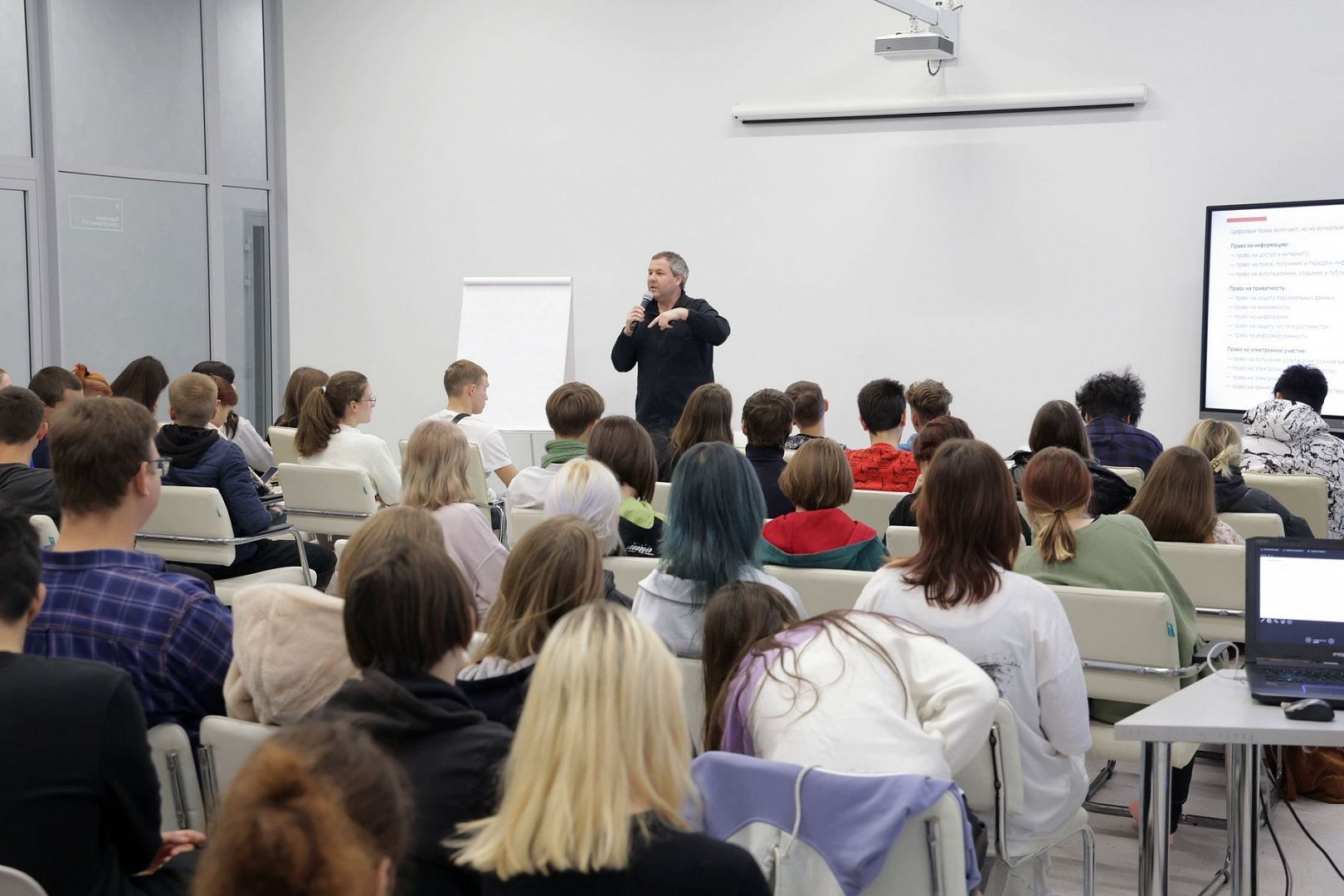 Сегодня советник министра образования и науки Астраханской области, эксперт Росатома Анатолий Ершов рассказал ребятам о том, почему важно уметь безопасно и комфортно пользоваться интернетом и современными технологиями. Он также познакомил студентов с государственными сервисами (Госуслуги, ПФР, МВД России, Онлайнинспекция.рф, ФССП, ГИС ЖКХ, Мой налог и др.) и объяснил, какие услуги можно получить с их помощью, не выходя из дома.