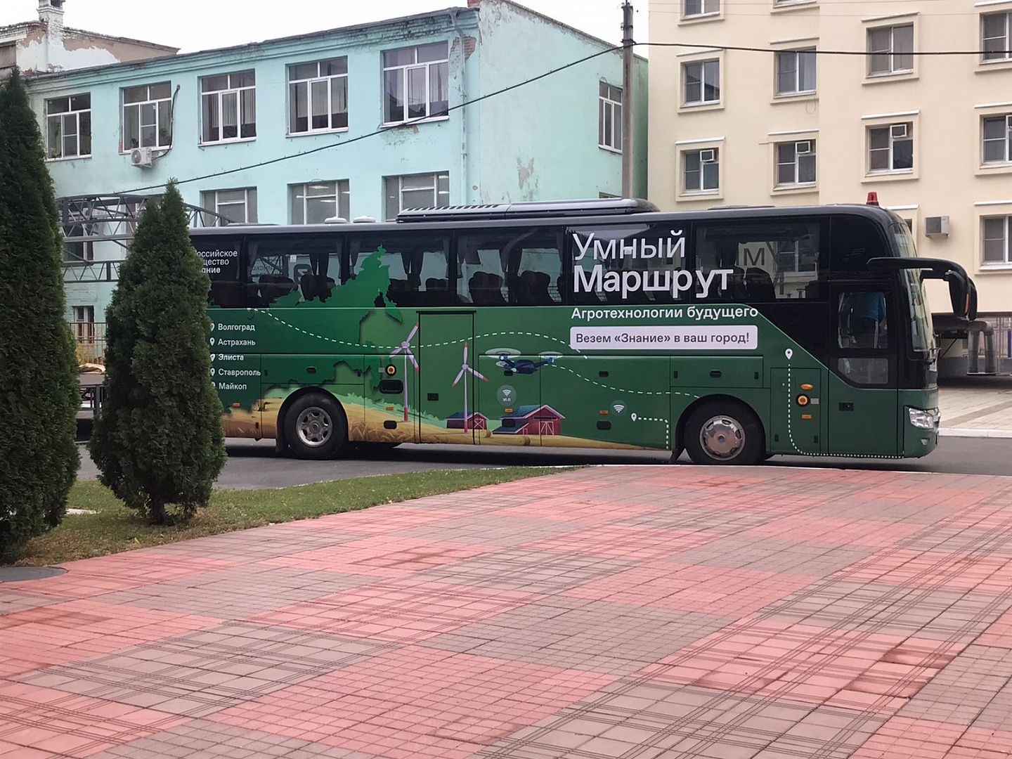 Эксперты форума прибыли в Астраханскую область на брендированном автобусе, на котором они проехали по «Умному маршруту». В тех городах, по которым он проходит, проводятся мероприятия, посвященные трендам и инновациям в сельском хозяйстве.