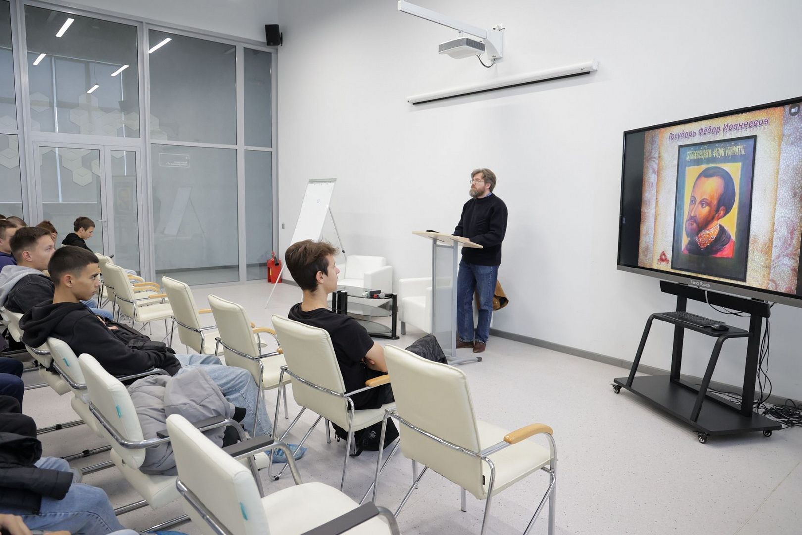 Он рассказал студентам об истории возникновения Дня народного единства. Учащиеся узнали, что праздник установлен в честь важного события в российской истории — освобождения Москвы от польских интервентов в 1612 году, и приурочен ко Дню Казанской иконы Божией Матери.
