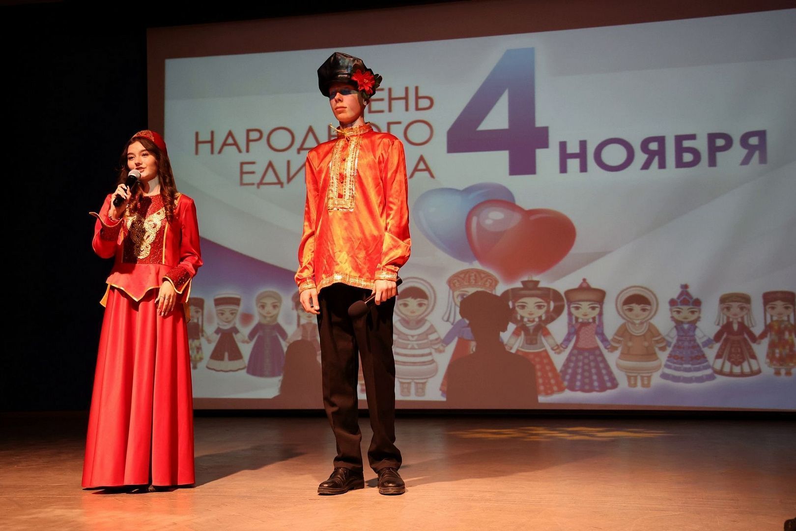 Лейтмотивом праздника стало его название: «Когда мы едины – мы непобедимы». Ведущие концерта предстали перед гостями в национальных костюмах народов России. Они рассказали об истории праздника, о природном и национальном богатстве нашей страны, о традициях народов, проживающих в России и в Астраханской области.