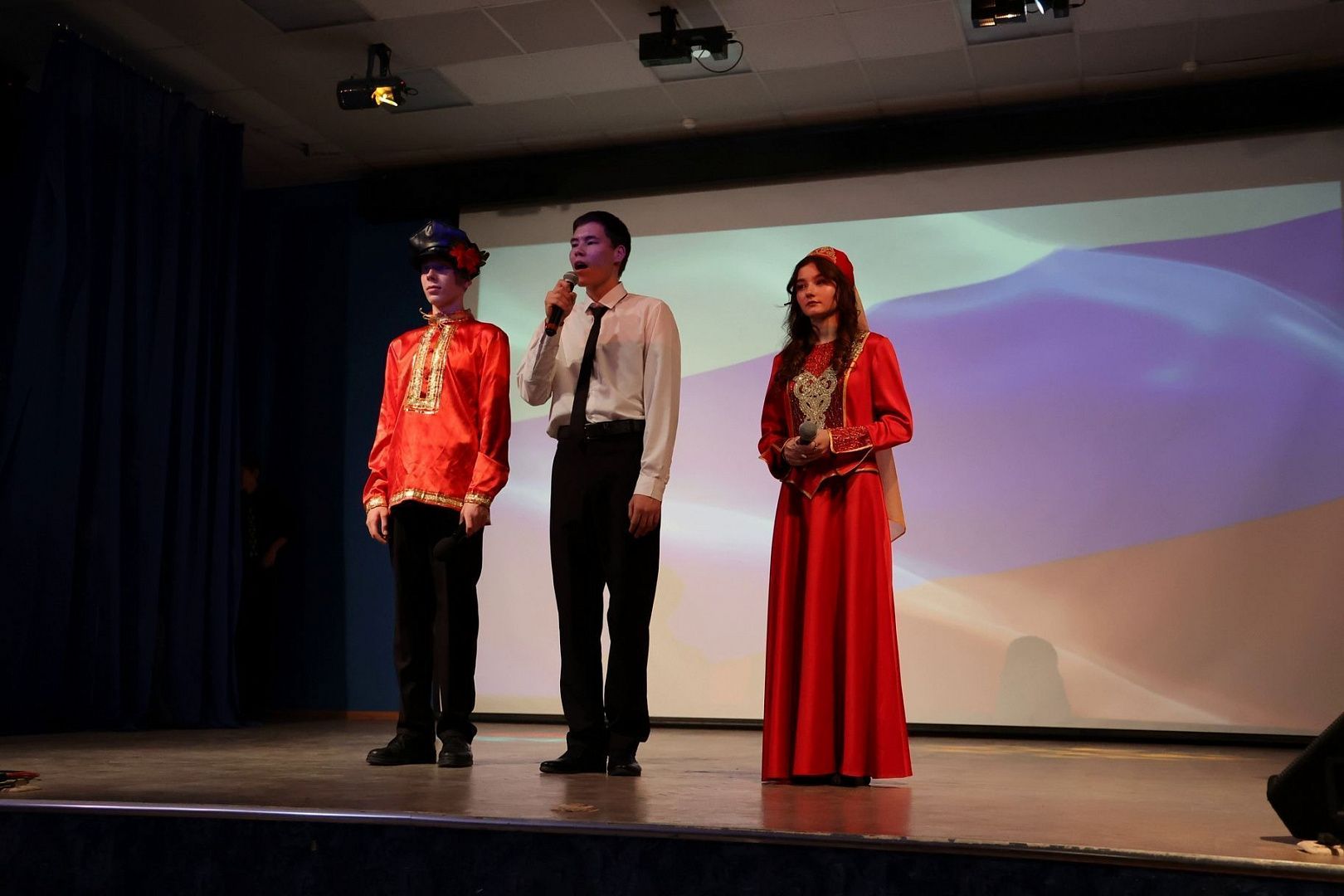 Одна из традиций россиян – открывать важные мероприятия Гимном Российской Федерации. Все участники и гости праздника стоя исполнили Гимн страны. В программе концерта прозвучали песни о Родине, народные инструменты, стихотворения о силе и могуществе России. Студенты исполнили русский и чеченский народные танцы, водили хоровод дружбы.
