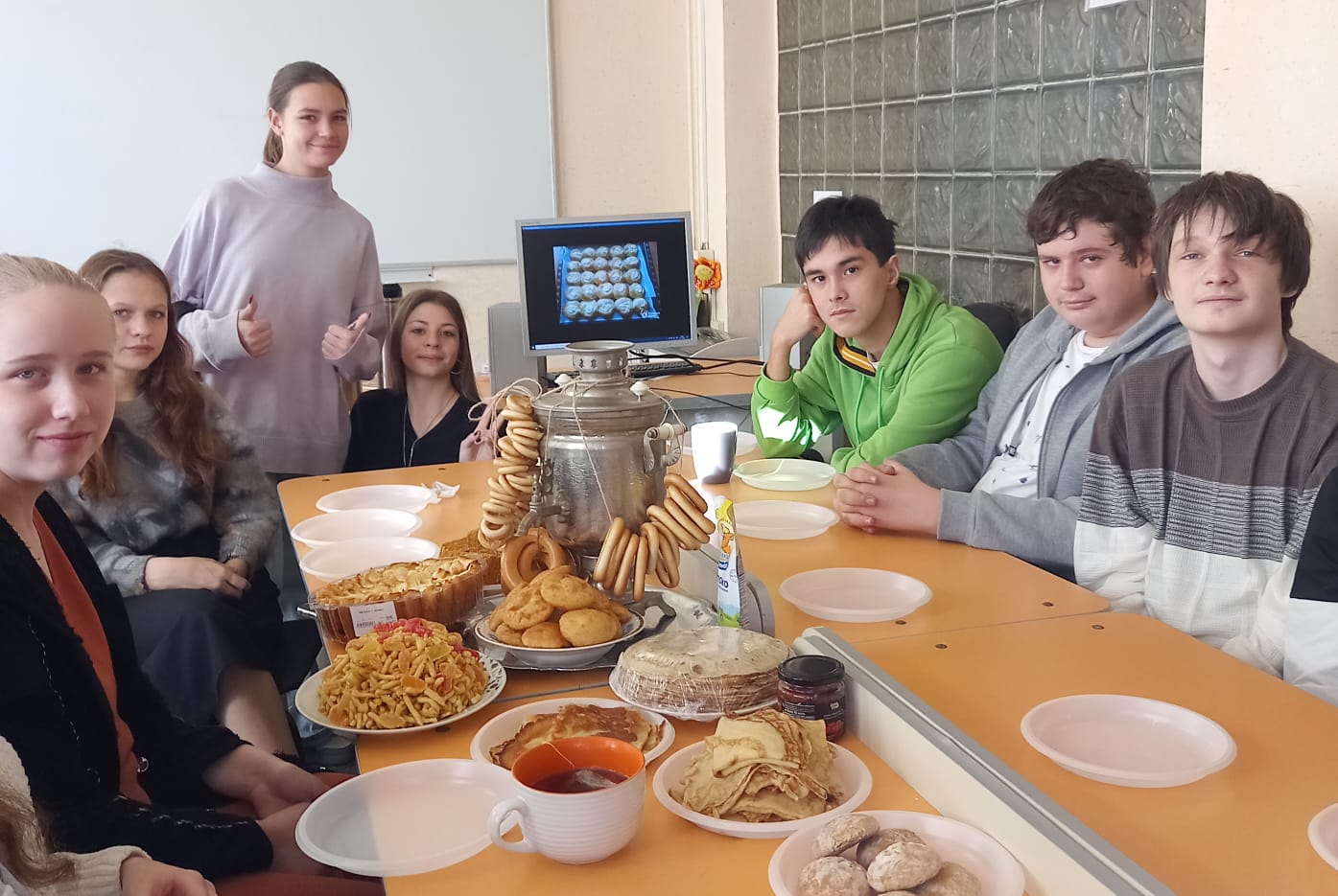 Ребята с удовольствием посмотрели зажигательное видео «Танцы с пиалами» астраханских татар. Далее для участников мероприятия прошла викторина на знание русских блюд и сладостей, известных во всем мире.