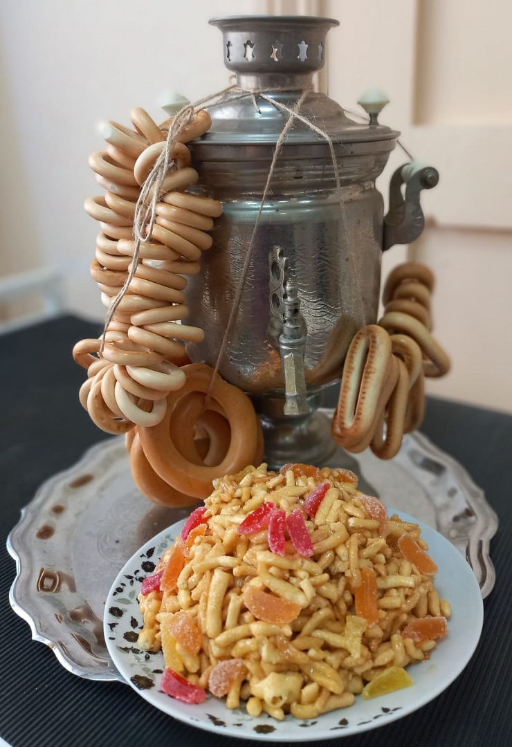 Так и ребята устроили в группе чаепитие с национальными сладостями, которые приготовили сами или с помощью родителей, и поговорили о традициях и культуре наших народов. Адиля Кушалиева приготовила баурсаки, Андрей Сергеев и Алексей Лазарев напекли блинов и оладий, Даша Ермилова сварила душистый взвар из облепихи, а Айдар Мурзагалиев приготовил чак-чак.