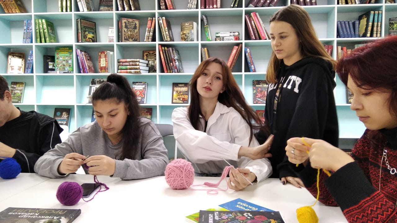 Учащиеся групп БС-1101 и РИК-361 механического отделения Астраханского государственного политехнического колледжа посетили мастер-класс «Знакомство с крючком» в Центральной городской библиотеке.