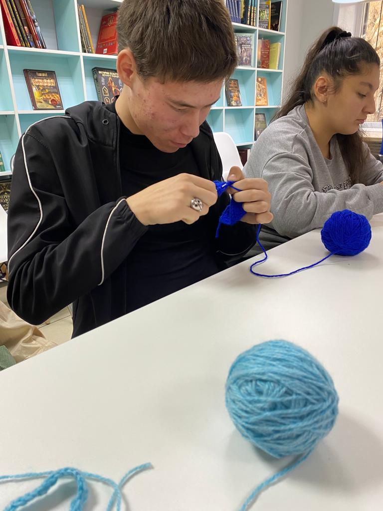 Сотрудники библиотеки показали ребятам, как выполняются различные техники вязания: воздушные петли, столбики без накида и столбики с накидом. В ходе мастер-класса наши студенты смогли связать своё первое изделие.
