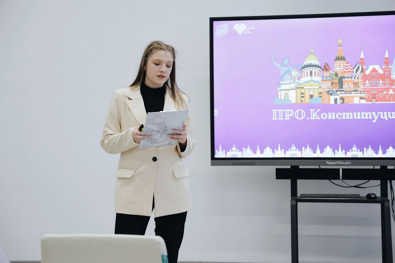 Специалист представила участникам мероприятия информацию о первых конституционных актах, созданных в разных странах мира. Также она рассказала студентам об истории конституционной мысли в России и общественно-политической ситуации, в которой принималась ныне действующая Конституция РФ. Молодые люди познакомились с биографическими данными российских политических деятелей, внесших основной вклад в создание текста Конституции РФ, принятого в 1993 году.