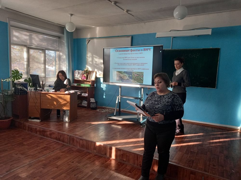 1 декабря, во Всемирный день борьбы со СПИДОм в Лиманском филиале АГПК прошла встреча студентов групп ПК-2129, ПСО-2129, РЭМ-245 с врачом – дермовенерологом А. Малаевой Лиманской районной больницы и специалистами Центральной модельной библиотеки п. Лиман на тему: «Профилактика ВИЧ/СПИДа. Бояться не нужно! Нужно знать!».