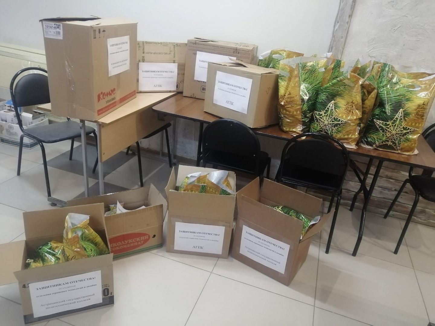 Студенты отделения сервисных технологий и дизайна Астраханского государственного политехнического колледжа приняли участие в акции «Новогодние подарки для военнослужащих».