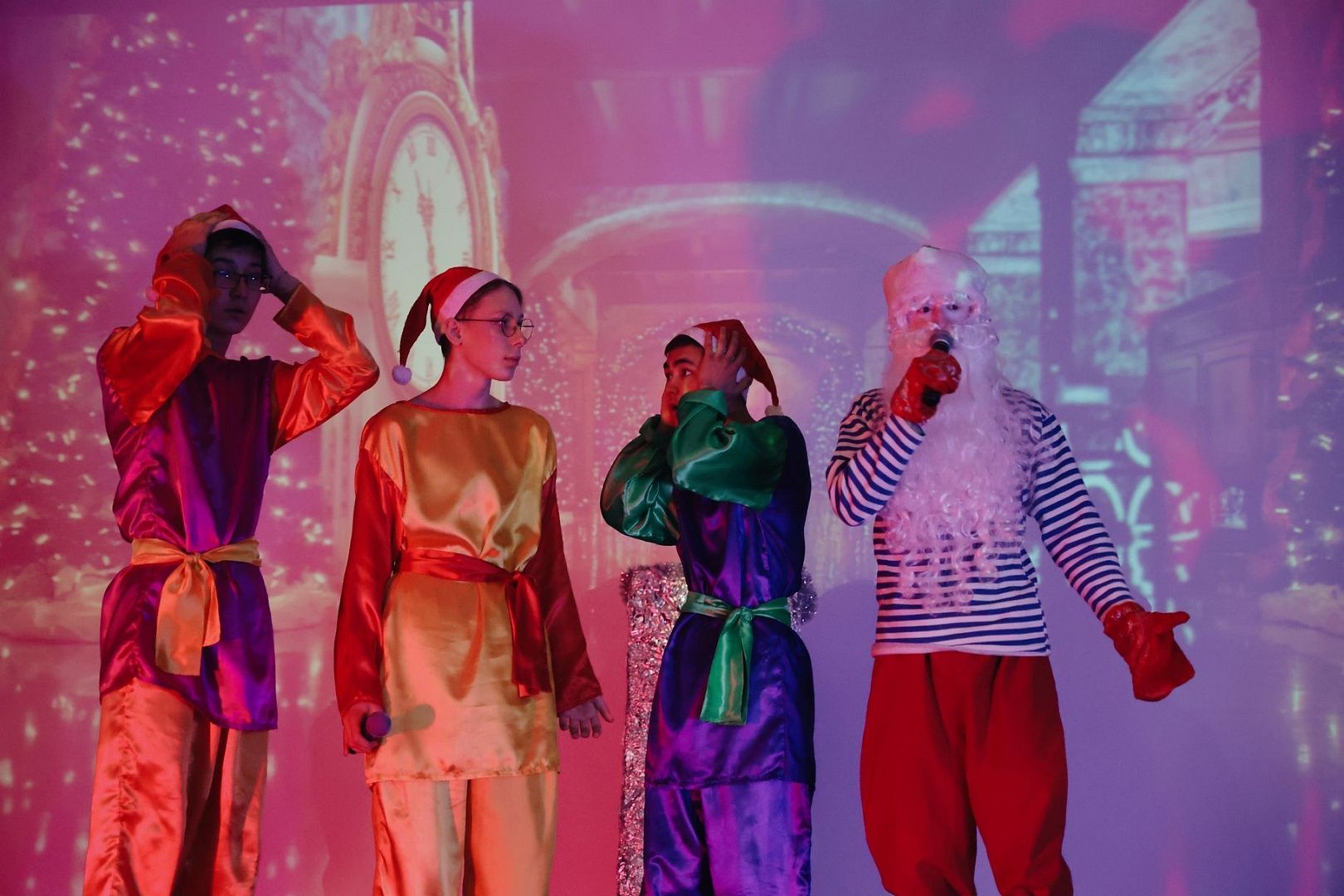Зрители увидели волшебную сказку «Давайте верить в чудеса», героями которой стали Кощей, его помощница Латка, Гном, Ёлочка, Зимушка и, конечно, Дед Мороз со Снегурочкой. Со сцены они рассказали историю о том, как Кощей украл Снегурочку, но силы добра и любви победили и помогли внучке вернуться к Деду Морозу и спасти праздник.