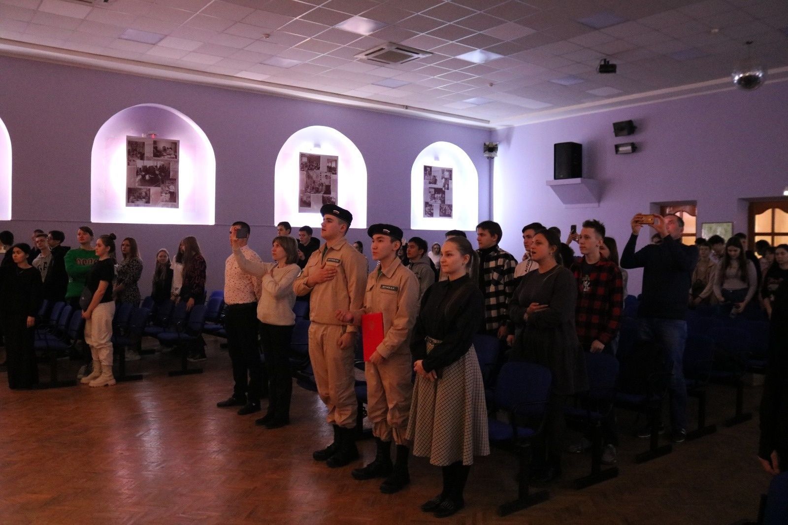 В честь дня рождения патриотического клуба АГПК «Наследники Победы» в актовом зале прошло праздничное мероприятие. Ребят пришли поздравить преподаватели колледжа, одногруппники, сокурсники и родители.