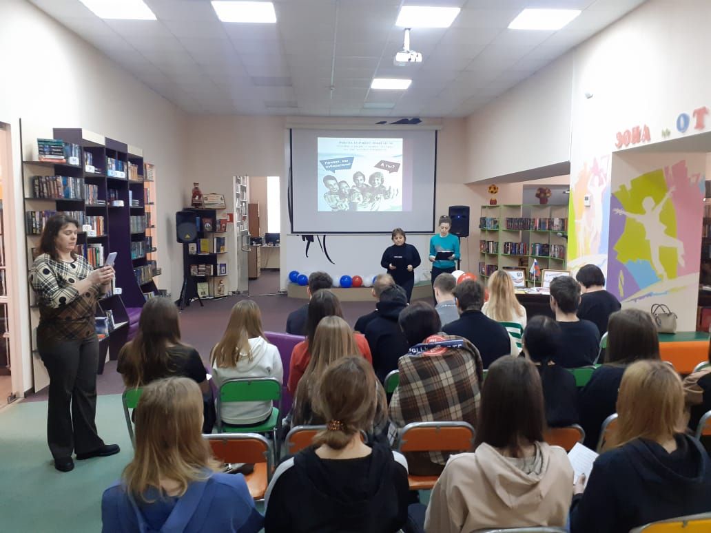 В рамках акции «День молодого избирателя» председатель территориальной избирательной комиссии Лиманского района Р. Баранова совместно со специалистами Центральной модельной библиотеки п. Лиман провели мероприятие, посвященное предстоящим выборам Президента РФ и депутатов органов местного самоуправления Лиманского района.