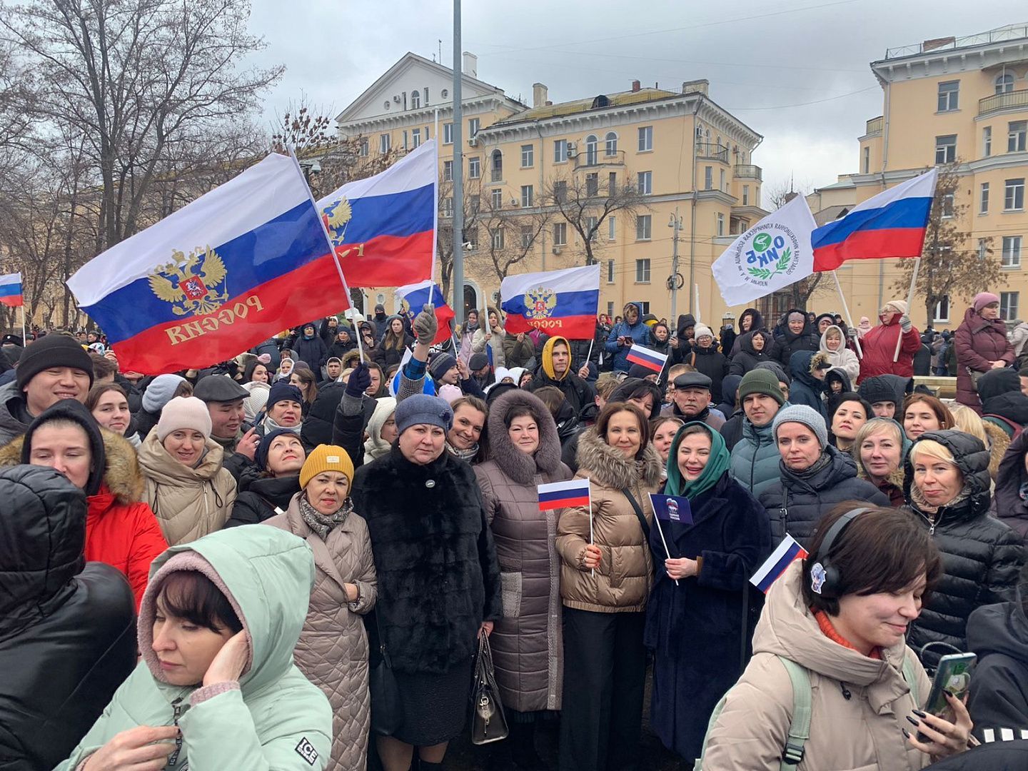 Более 400 студентов политехнического колледжа вместе с преподавателями и сотрудниками АГПК пришли выразить свою поддержку бойцам, которые выполняют свой долг в зоне спецоперации.