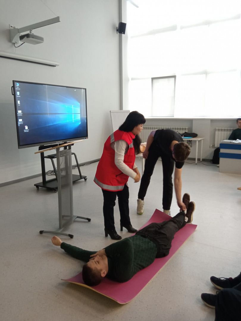 Учащиеся колледжа познакомились с основными принципами оказания первой помощи, а также с алгоритмами действий и правилами поведения в различных ситуациях. В частности, юноши и девушки узнали, как помочь пострадавшему принять восстановительное положение и как выполняется сердечно-лёгочная реанимация.