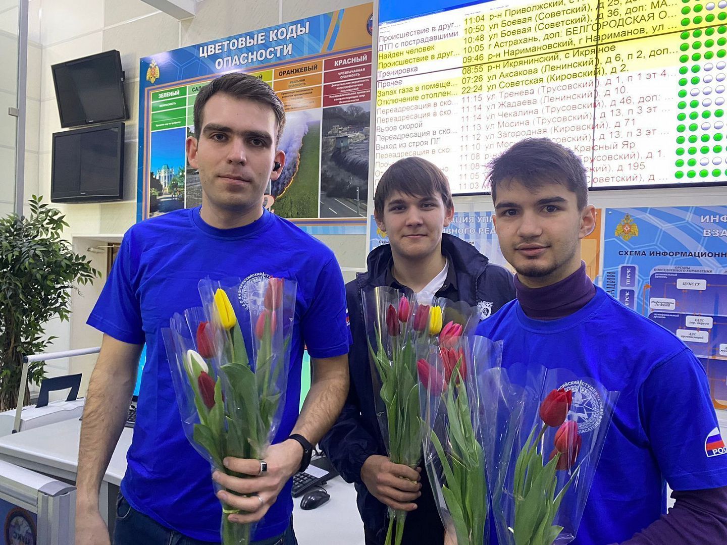 А 8 марта наши студенты в составе астраханского регионального отделения «Всероссийский студенческий корпус спасателей» стали участниками акции «В благодарность за службу!». Они дарили праздничное настроение, букеты цветов и наилучшие пожелания девушкам Главного управления МЧС России по Астраханской области, которые несли дежурство в праздник.