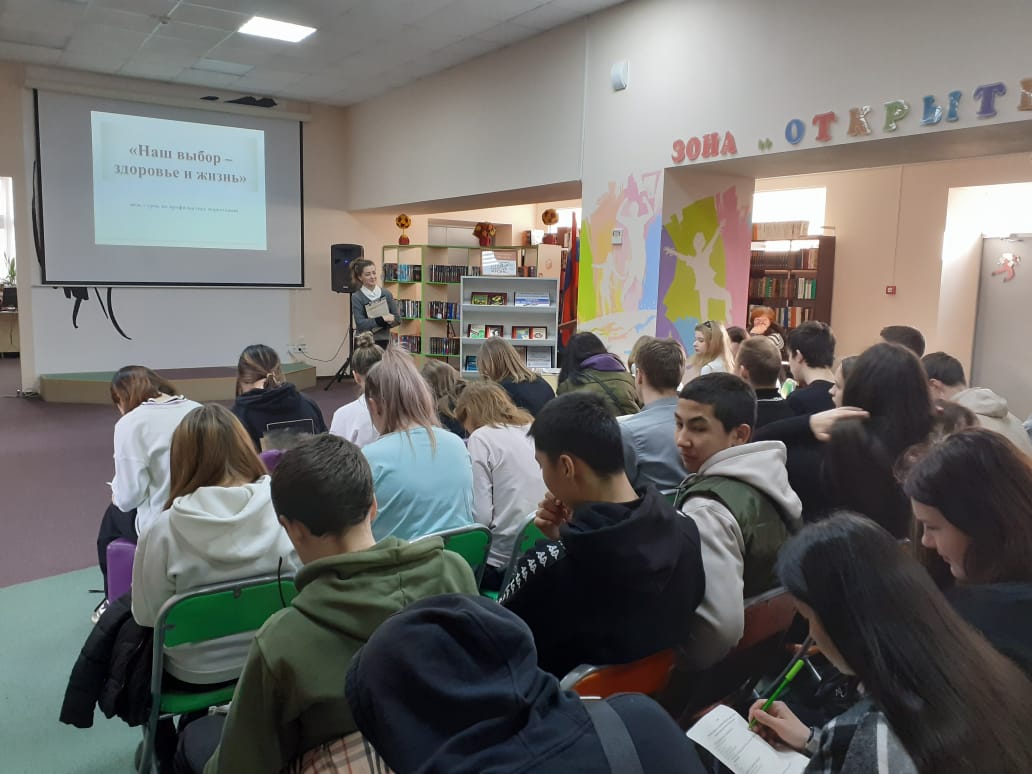 15 марта специалисты Центральной модельной библиотеки п. Лиман провели для студентов 1,2 и 4 курсов тематический урок «Наш выбор-здоровье и жизнь», ознакомив обучающихся с последствиями употребления наркотиков.