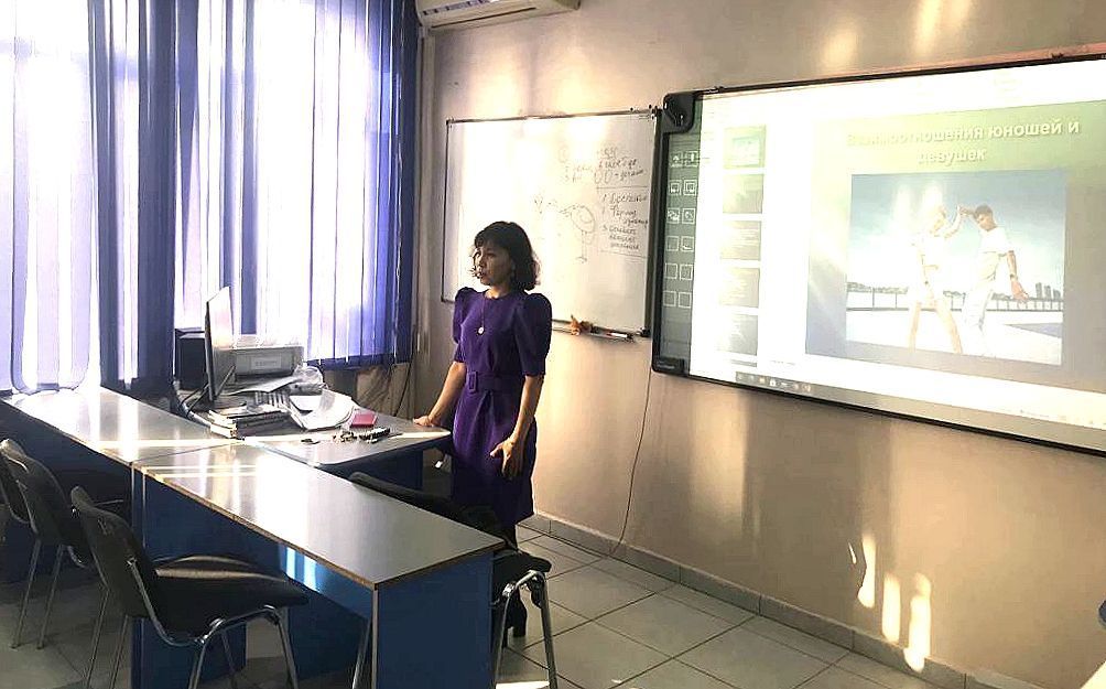 Студенты группы РИК-1109 встретились с заведующей отделением «Молодая мама» Кризисного центра помощи женщинам Гульфиёй Баделовной Ахаевой. Тема встречи: «Взаимоотношения девушек и юношей».