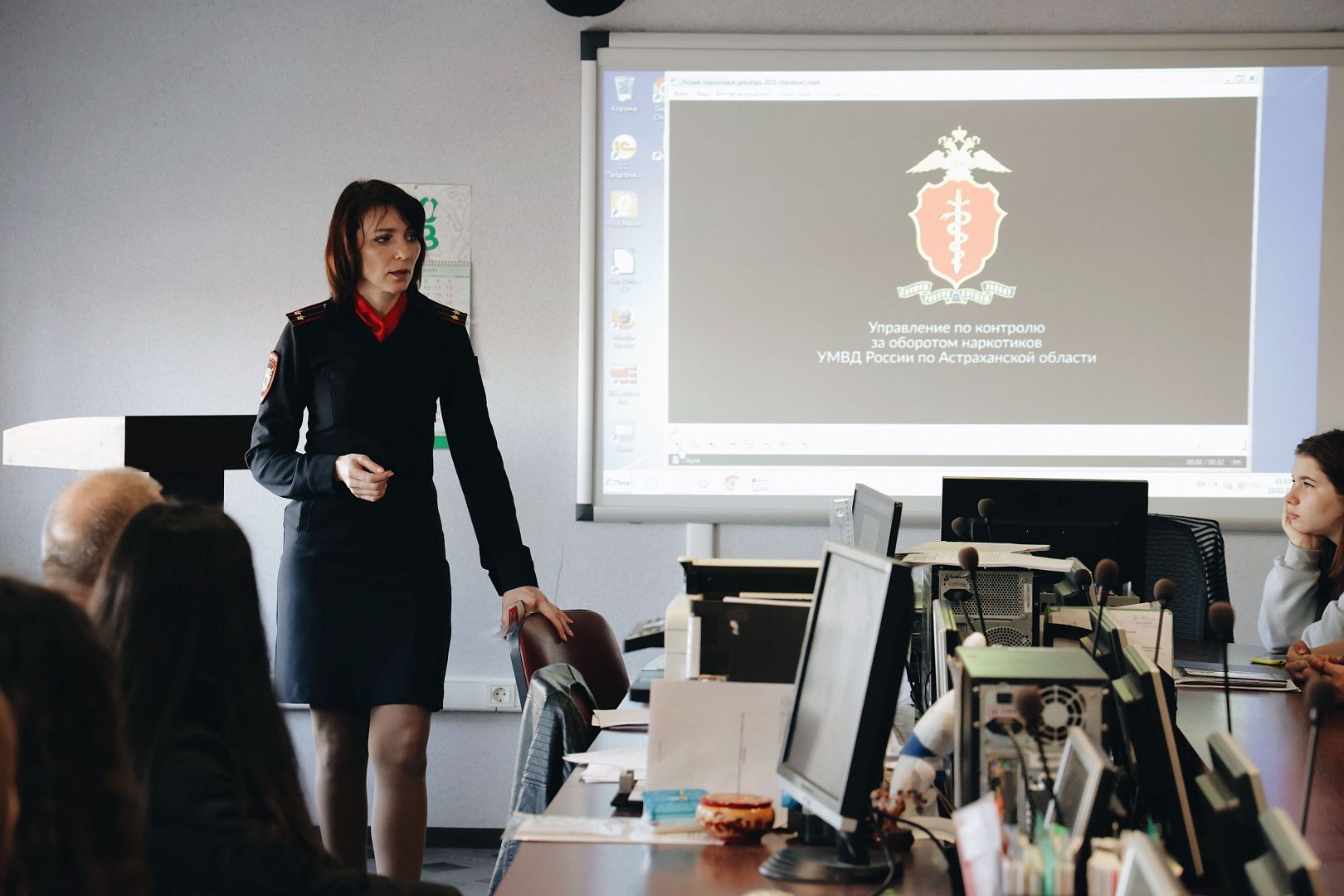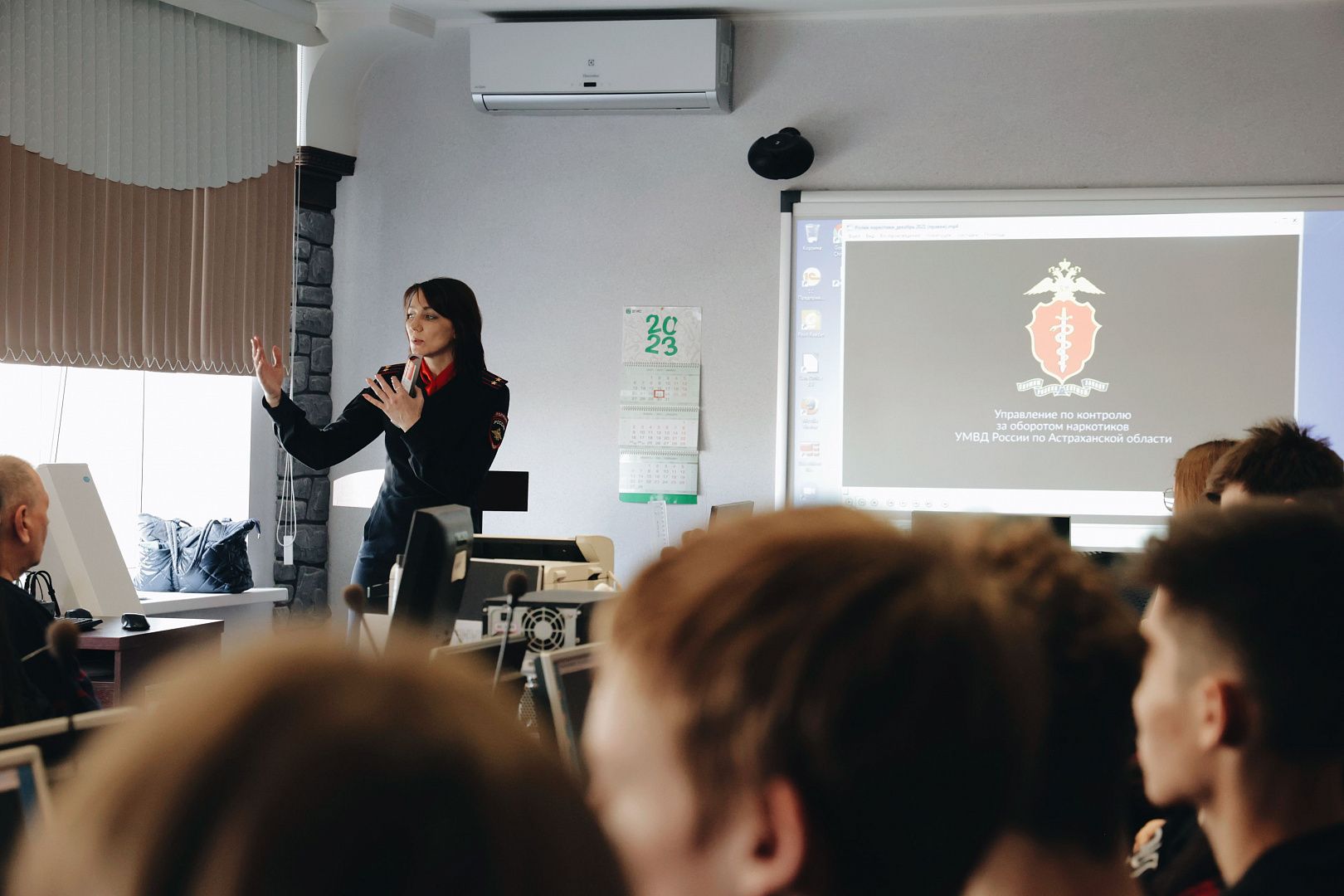 В рамках Общероссийской акции «Сообщи, где торгуют смертью» студенты политехнического колледжа встретились с сотрудником Управления по контролю за оборотом наркотиков УМВД России по Астраханской области Екатериной Александровной Зубановой. Мероприятие было организовано социально-психологической службой АГПК.
