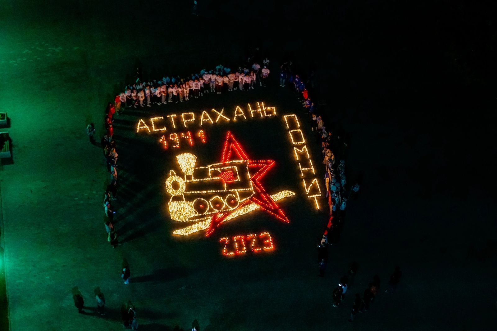Молодежь региона, в том числе студенты Астраханского государственного политехнического колледжа, приняли участие в акции «Огненные картины войны» движения «Волонтеры Победы». На площади Кремля активисты разных общественных организаций вместе создали изображение поезда Победы и надпись «Астрахань помнит» из нескольких тысяч свечей.