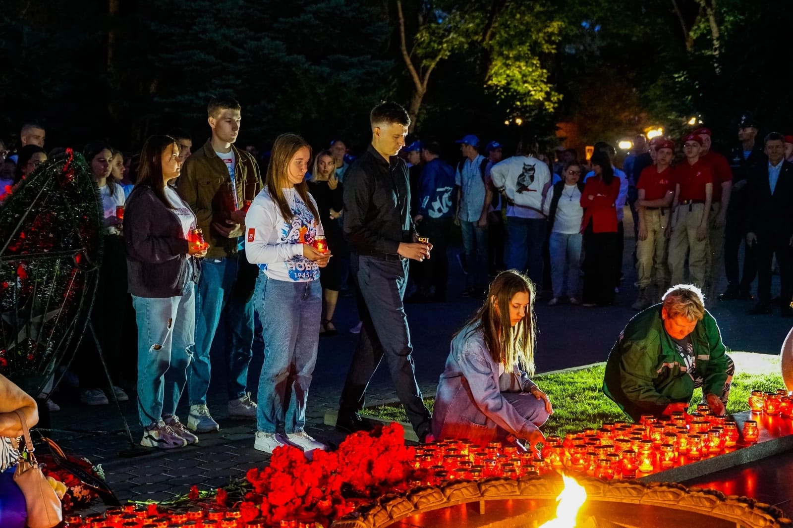 Затем астраханцы приняли участие в акции «Свеча памяти», в ходе которой у Вечного огня в Братском саду появились зажженные лампады от представителей органов власти, правоохранительных органов, общественных и патриотических организаций, ветеранов боевых действий, неравнодушных жителей города, молодёжи.