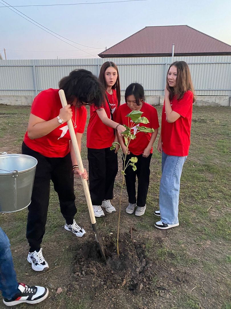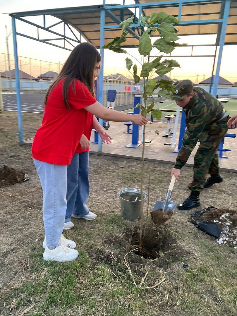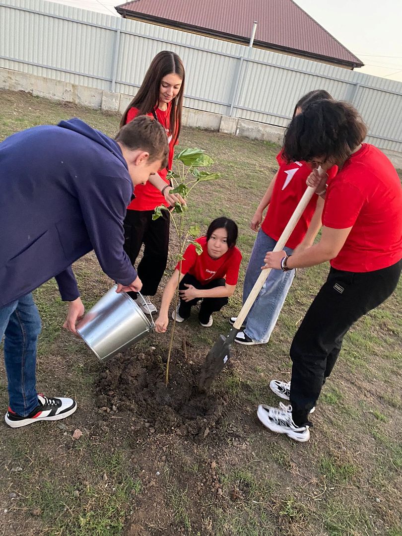 Ещё одну акцию в честь памятной даты студенты политехнического колледжа провели на территории Казачьего кадетского корпуса имени атамана И.А. Бирюкова. Здесь волонтёрский отряд АГПК «Доброе сердце» высадил «Аллею Первых» в знак единства России.