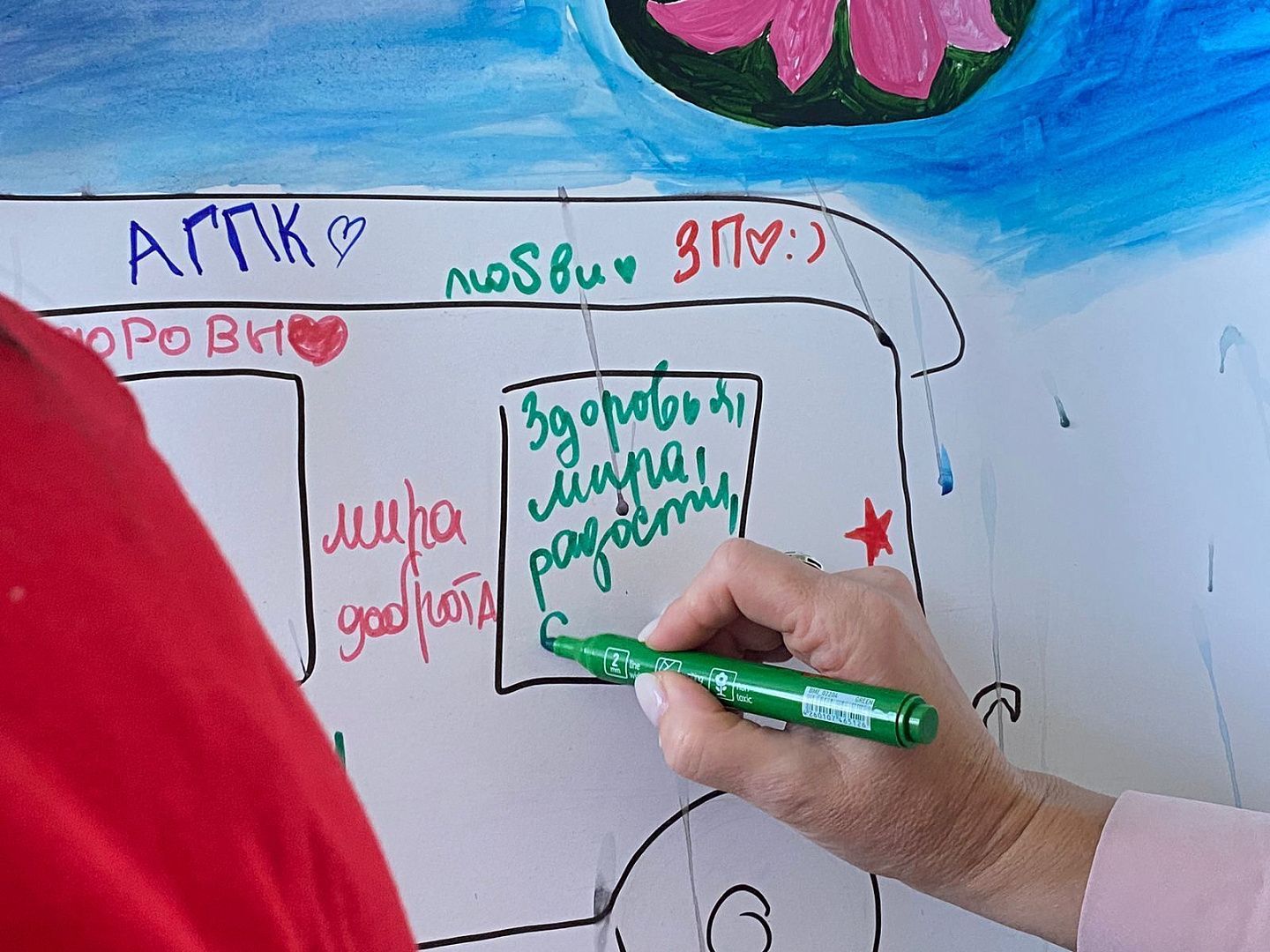 А на базе Центра опережающей профессиональной подготовки прошла акция «Поезд пожеланий». Участники «Движения Первых» создавали плакаты и рисунки с изображением поезда, который символизирует движение, а также объединение регионов нашей страны. Ребята написали пожелания для жителей Донецкой и Луганской народных Республик, Херсонской и Запорожской областей.