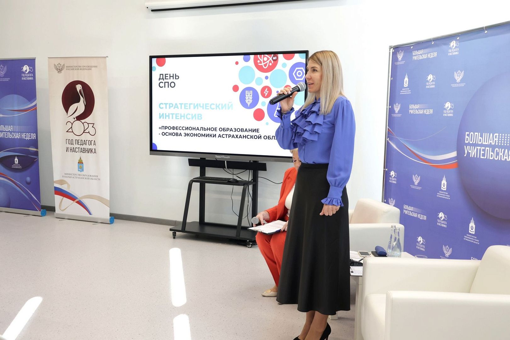 В День среднего профессионального образования в нашем колледже был дан старт Большой учительской недели. На базе Центра опережающей профессиональной подготовки прошёл стратегический интенсив «Профессиональное образование – основа экономики Астраханской области».
