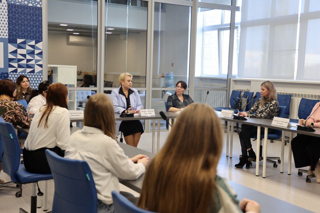 В обсуждении актуальных вопросов приняли участие Директор Астраханской дирекции по развитию бизнеса филиала Газпромбанк АО «Южный» Бахарева Наталья Георгиевна, преподаватели и студенты отделения информационных технологий, экономики и права..