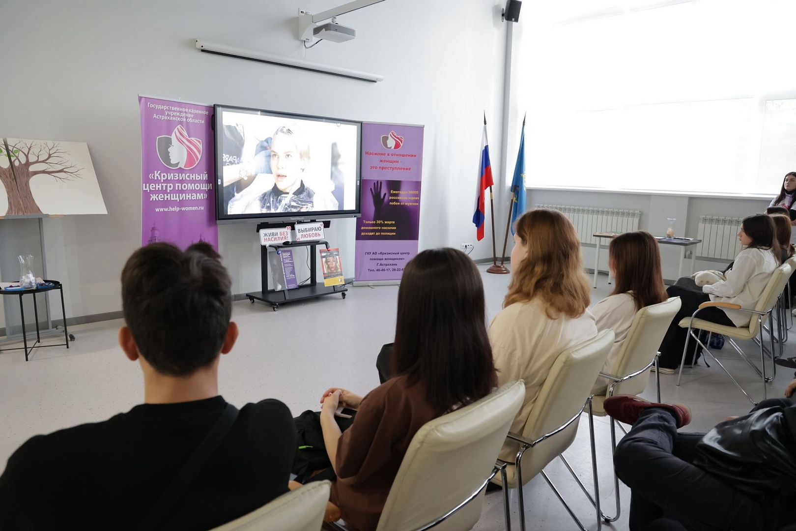 Заместитель директора Кризисного центра помощи женщинам Ольга Балакирева, заведующая отделением социальной реабилитации Марина Дмитриева, психологи Виктория Фарзалиева, Анастасия Омельченко показали студентам видеоролики с наглядными примерами разного рода насилия, а также обсудили их. Специалисты напомнили ребятам, как подать сигнал о помощи при домашнем насилии и получить бесплатную психологическую помощь в трудной жизненной ситуации.