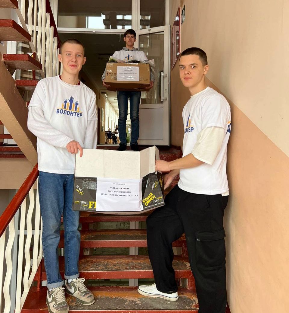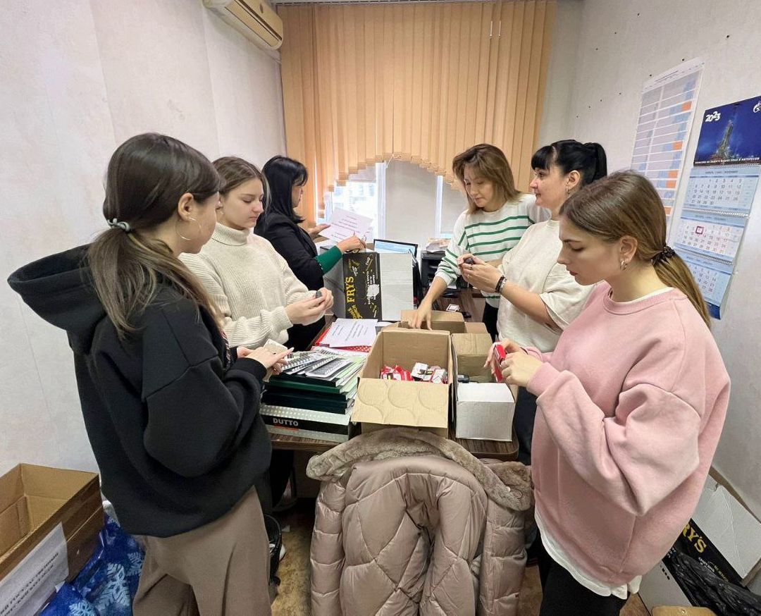 Собранные подарки студенты передали волонтёрам, которые занимаются отправкой гуманитарной помощи в зону специальной военной операции.