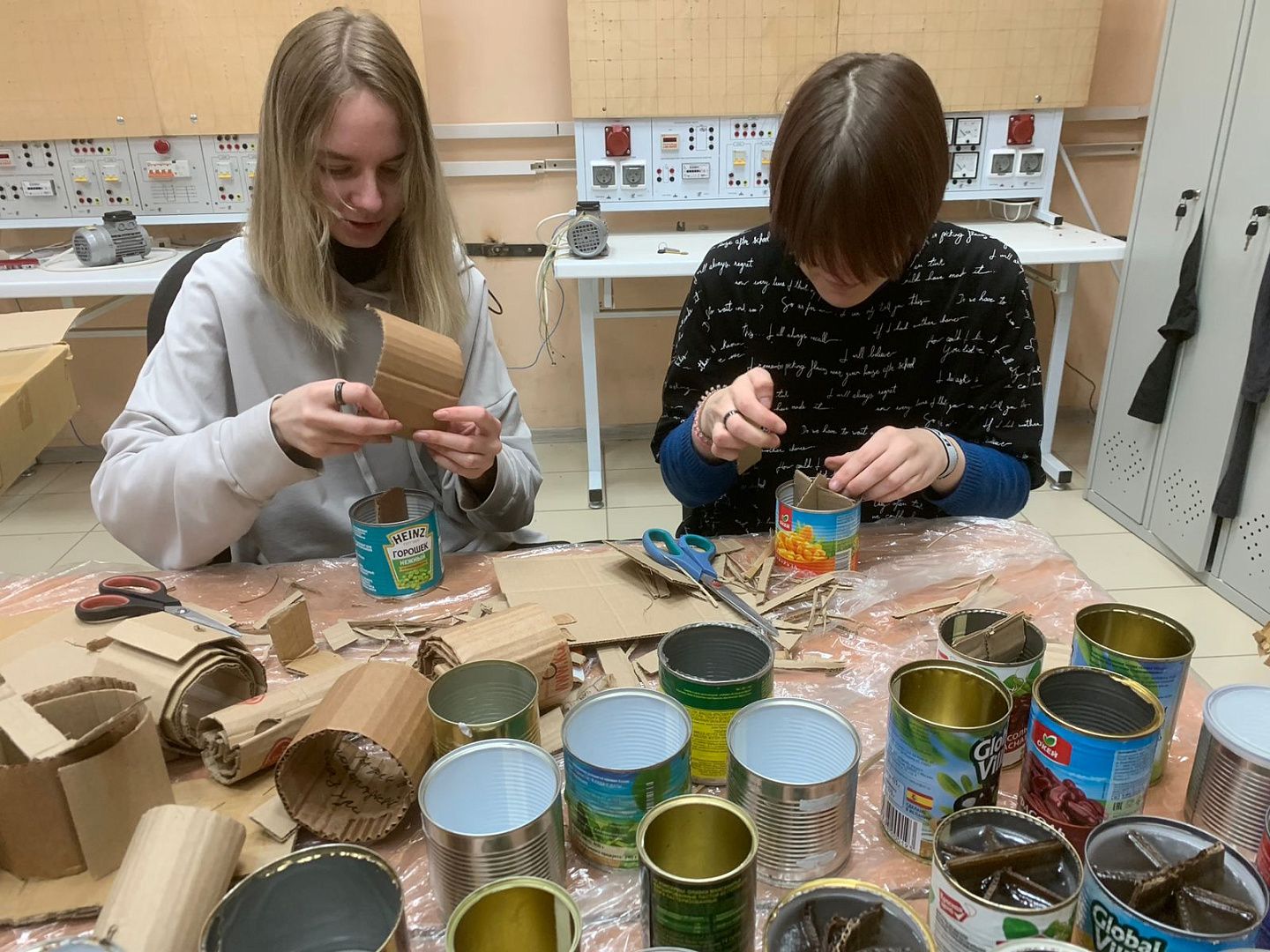 Ребята изготовили свечи из пустых консервных банок, которые принесли в колледж студенты и родители; гофрированного картона и парафина. Всего у наших волонтеров получилось 40 таких горелок.