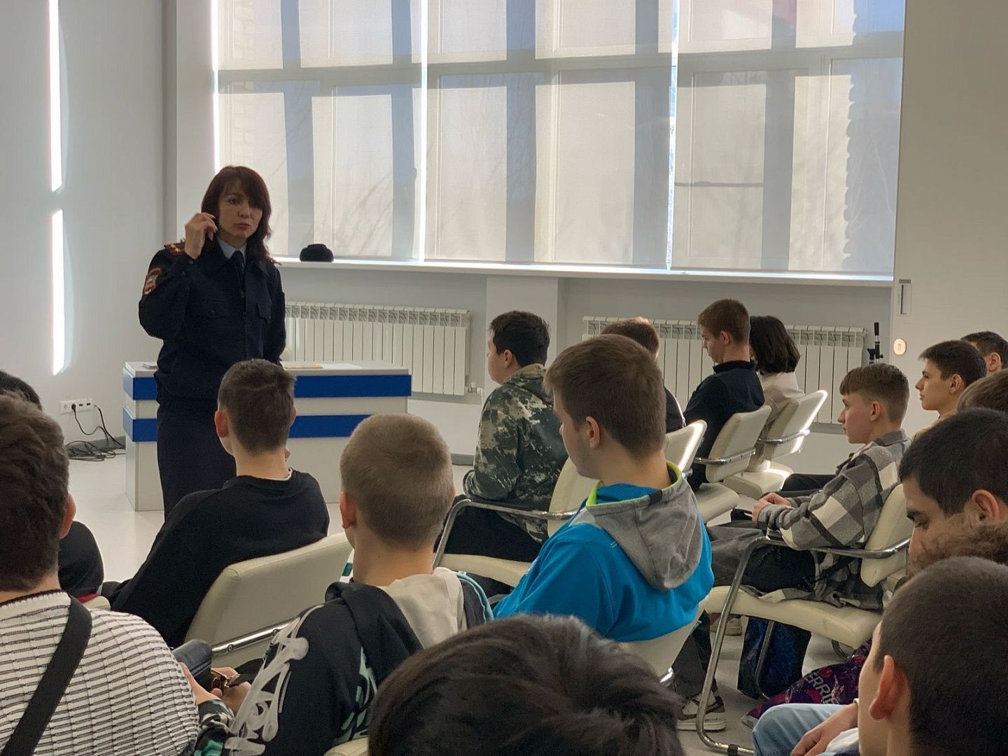 Екатерина Александровна начала встречу с рассказом из практики, как обучающиеся колледжей были втянуты в оборот наркотиков, продемонстрировала короткий видеоролик про последствия употребления психотропных веществ. Также она обсудила со студентами, как следует себя вести при нахождении подброшенных наркотиков. Она предупредила об ответственности за данные преступления.