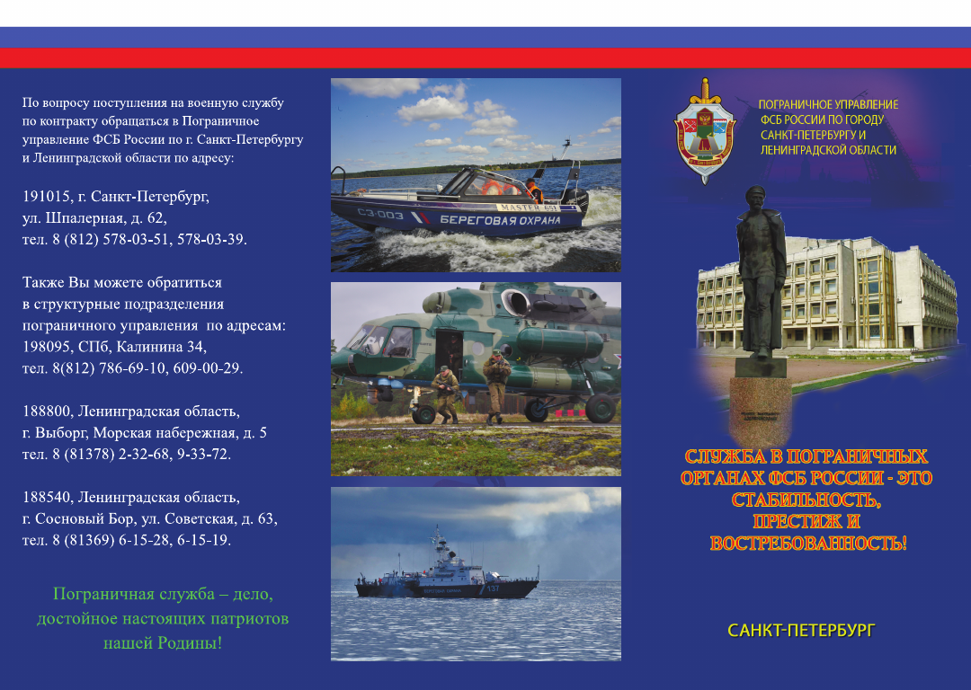 Пограничное управление ФСБ России по г. Санкт-Петербургу и Ленинградской области приглашает на службу по контракту