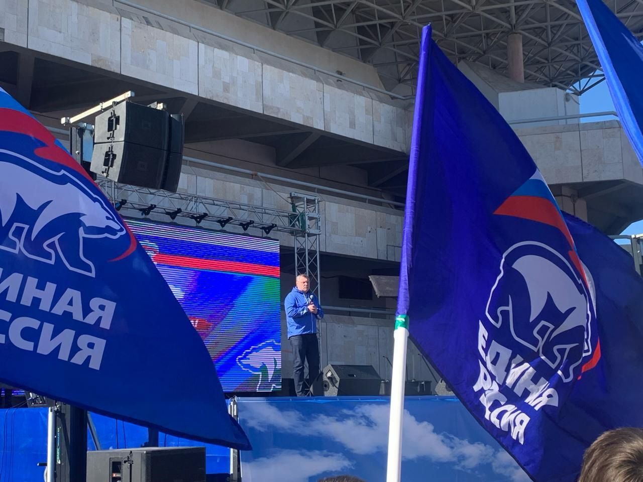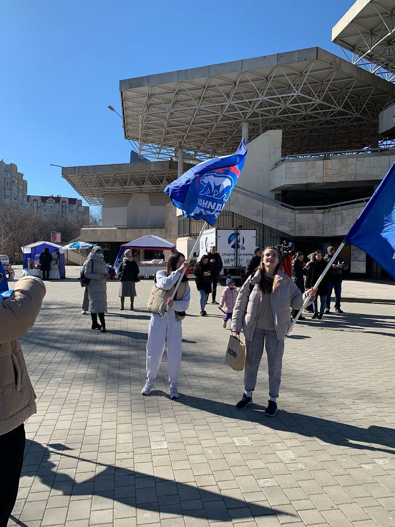 С приветственным словом со сцены к астраханцам обратился губернатор Астраханской области Игорь Бабушкин, который отметил, что наша страна всегда защищала и защищает мир и свободу, своих граждан, своих братьев, что какое именно будущее ждёт россиян, решать только самим жителям Российской Федерации.